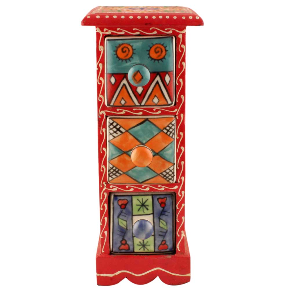 Spice Box-1325 Masala Rack Container Gift Item. Ceramic Drawers in Wooden Frame. The Spice Boxes are designed with different patterns. These boxes are made using natural wood which does not harm the purity of spices.