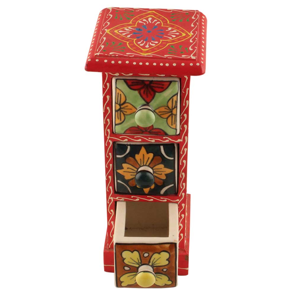Spice Box-1331 Masala Rack Container Gift Item. Ceramic Drawers in Wooden Frame. The Spice Boxes are designed with different patterns. These boxes are made using natural wood which does not harm the purity of spices.
