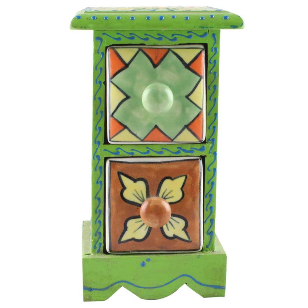 Spice Box-1367 Masala Rack Container Gift Item. Ceramic Drawers in Wooden Frame. The Spice Boxes are designed with different patterns. These boxes are made using natural wood which does not harm the purity of spices.