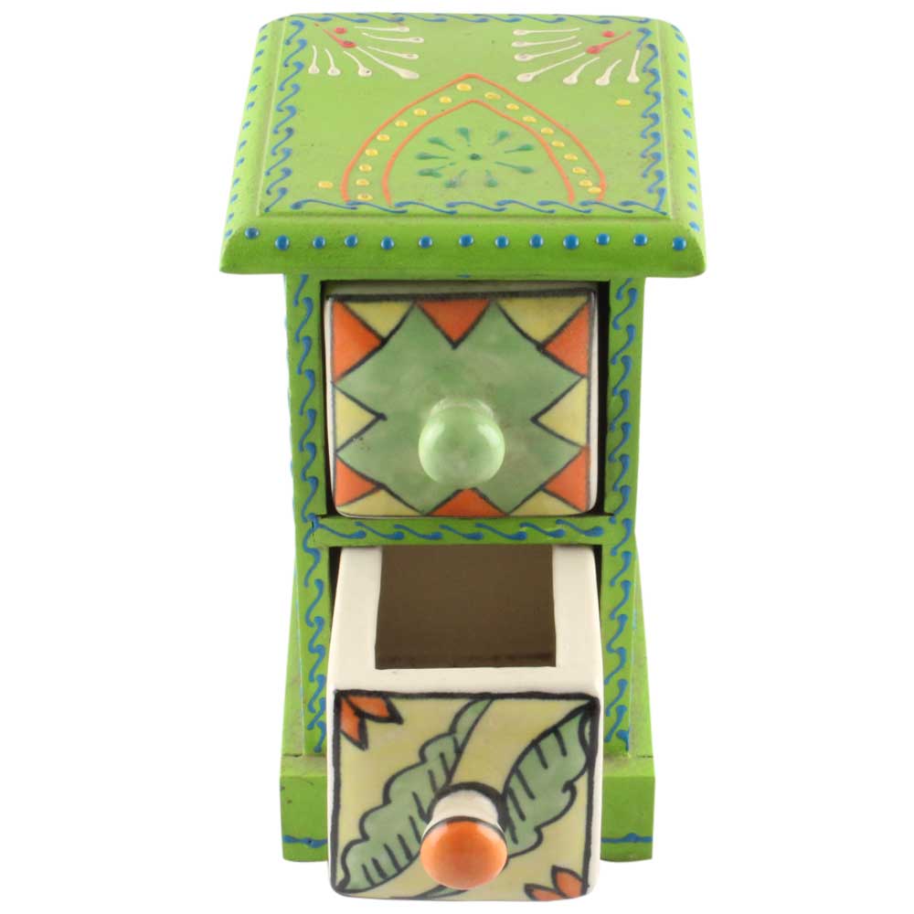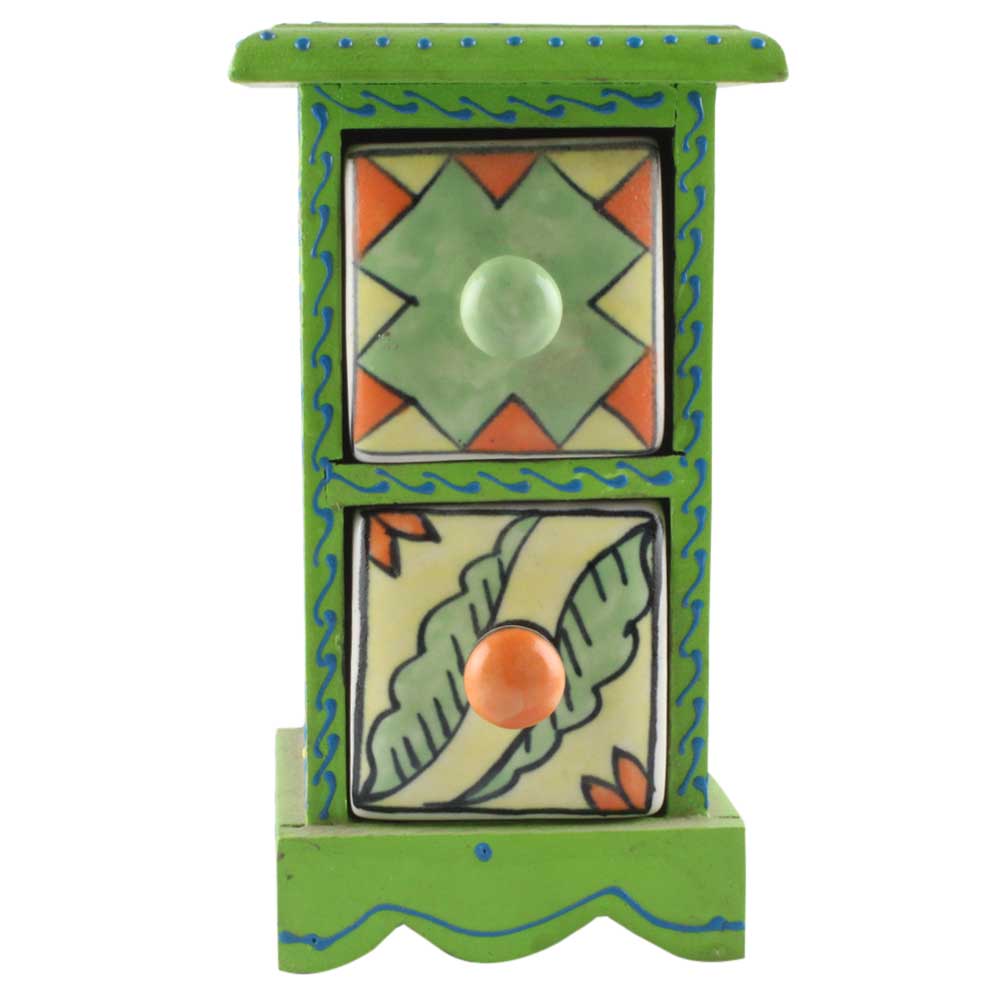 Spice Box-1372 Masala Rack Container Gift Item. Ceramic Drawers in Wooden Frame. The Spice Boxes are designed with different patterns. These boxes are made using natural wood which does not harm the purity of spices.