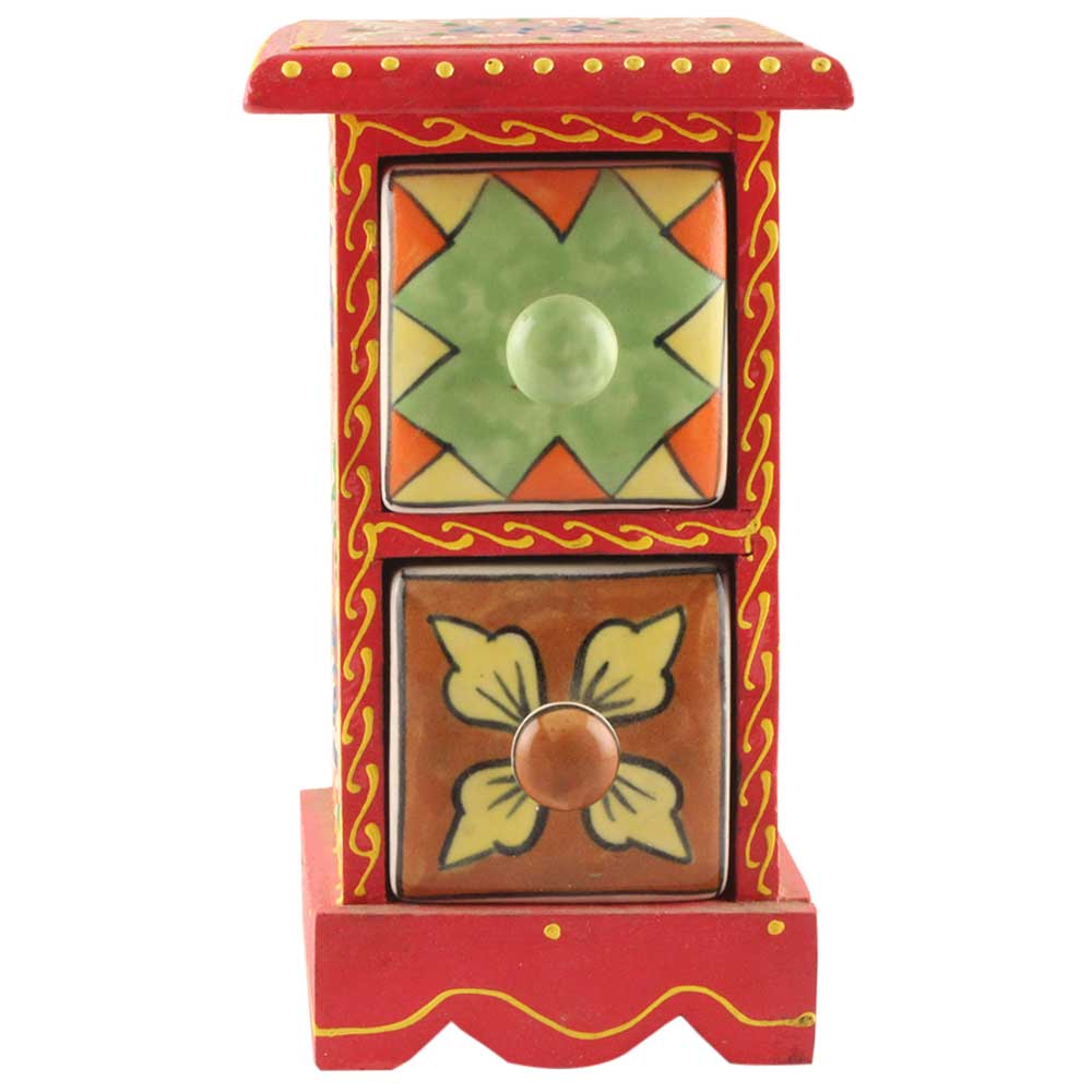 Spice Box-1386 Masala Rack Container Gift Item. Ceramic Drawers in Wooden Frame. The Spice Boxes are designed with different patterns. These boxes are made using natural wood which does not harm the purity of spices.