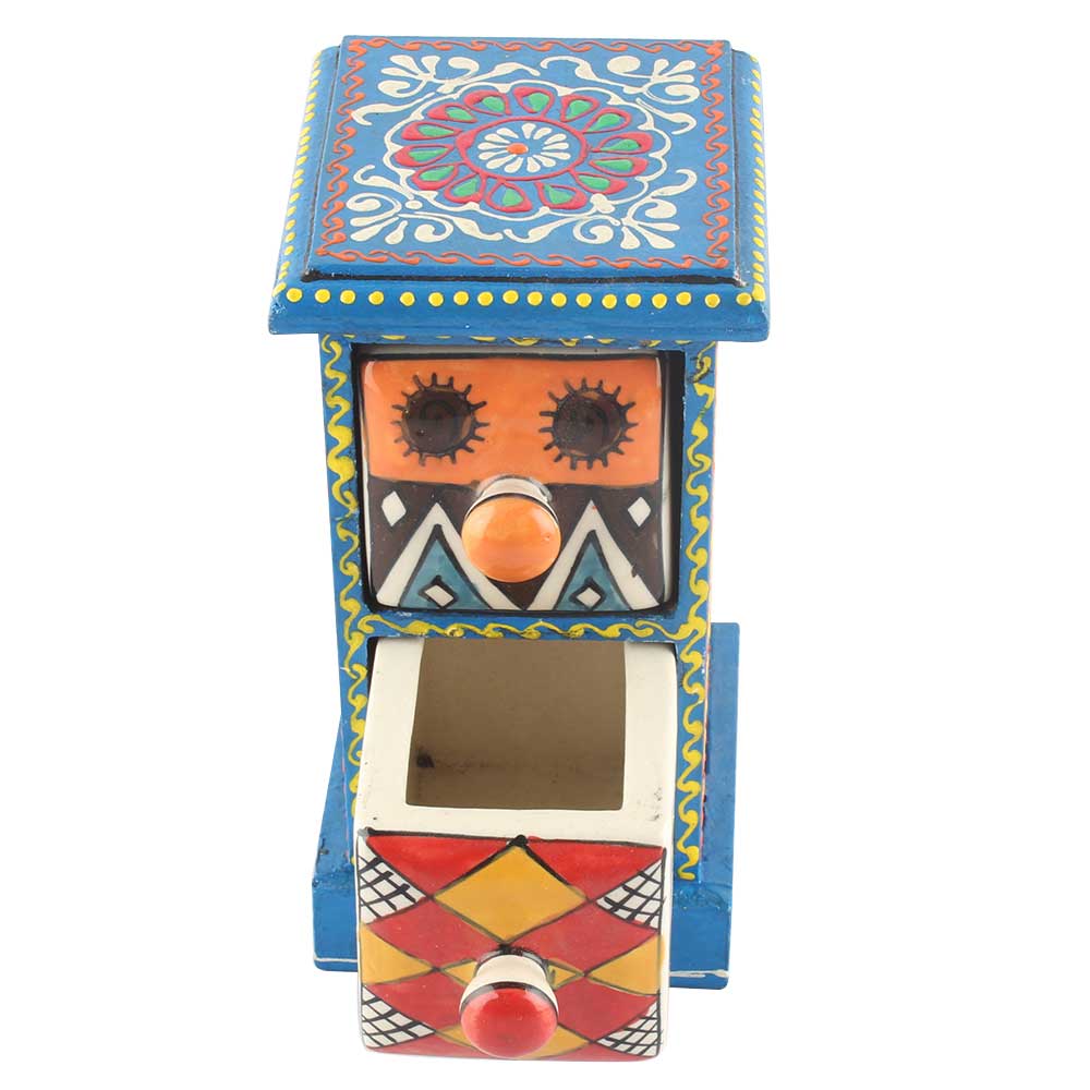 Spice Box-1039 Masala Rack Container Gift Item. Ceramic Drawers in Wooden Frame. The Spice Boxes are designed with different patterns. These boxes are made using natural wood which does not harm the purity of spices.