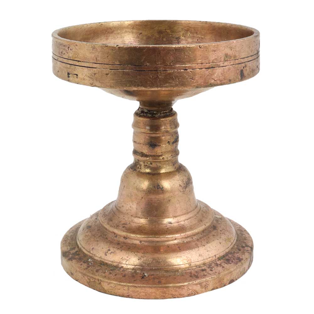 Spiritual Brass Cup Shaped Incense Burner with Handle has a cup for the incense and has a long and broad handle and stand. The handle is long and thick as is gets heated up by burning coconut husk on which incense is sprinkled.