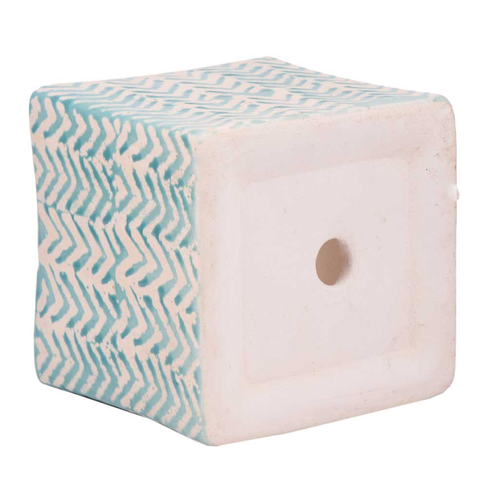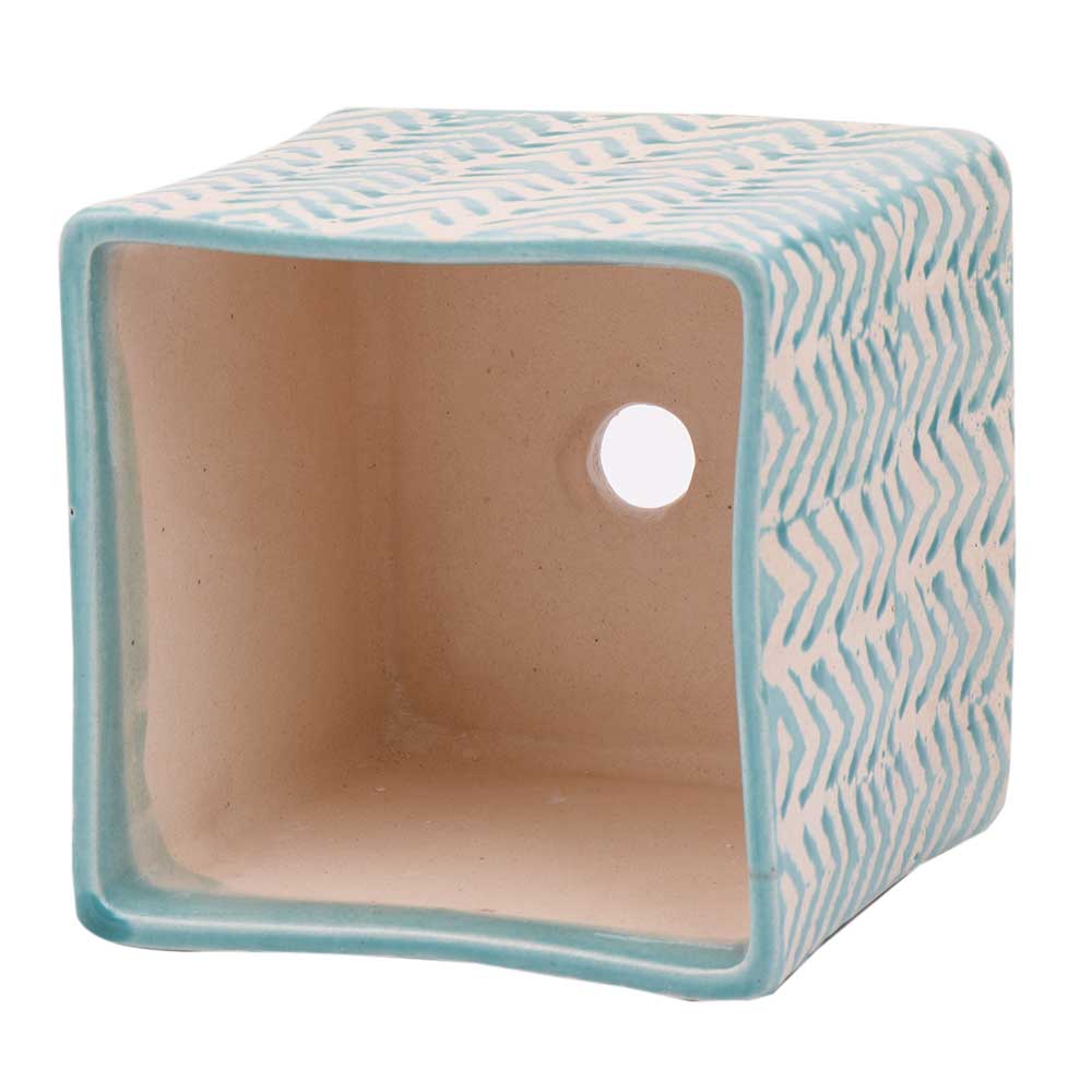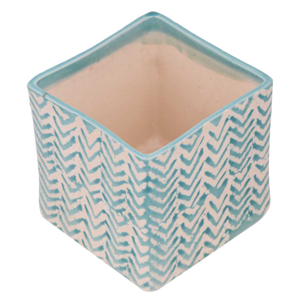 Square Ceramic Pot With Blue Chevron Zig Zag Pattern is the cute companion for ferns, herbs, kind of succulents, indoor and outside plants each real and artificial. Place this eco-friendly planter pot anywhere in your home balcony, table top, window sills, vegetable garden, and workplace table and can also be used as an interior decoration item.