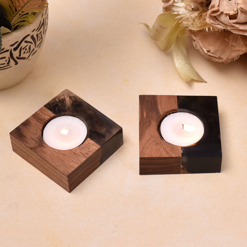 Square Wooden T-light Candle Holders, the perfect addition to any home decor. These candle holders are expertly crafted from high-quality wood, providing durability and elegance. The set includes two identical squares, making them the perfect size for holding standard t-light candles. The square design adds a modern touch, while the warm wood tone brings a sense of cosiness and relaxation to any space. They are also lightweight, making them easy to move and rearrange as you, please. These versatile candle holders can be used in various settings, including on a coffee table, dining table, or as a decorative piece on a shelf. They also make an excellent gift for any occasion, from housewarming parties to birthdays and weddings.
