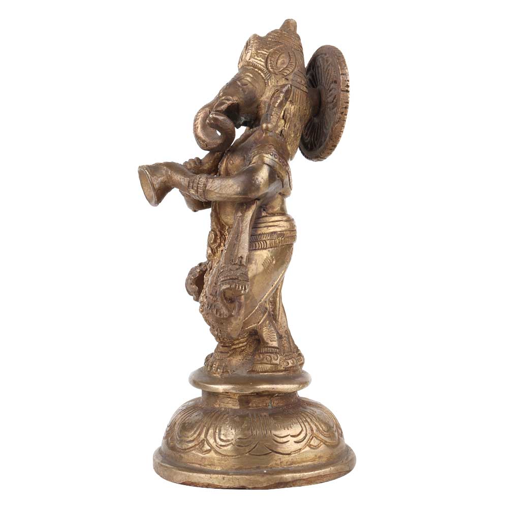 Standing Brass Ganesha Statue Playing Shahnai Decorative Showpiece
