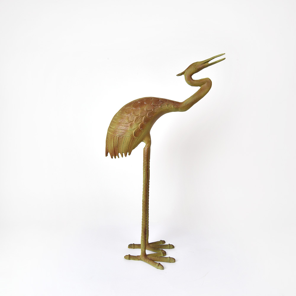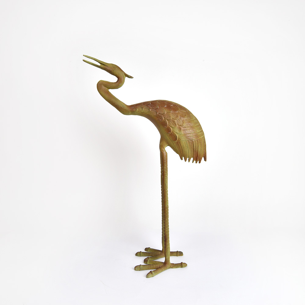 Standing Crane Bird Statue Figure in Vintage Bronze Indoor Outdoor Patio.