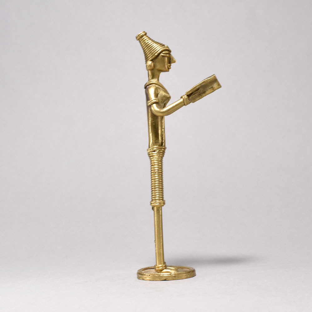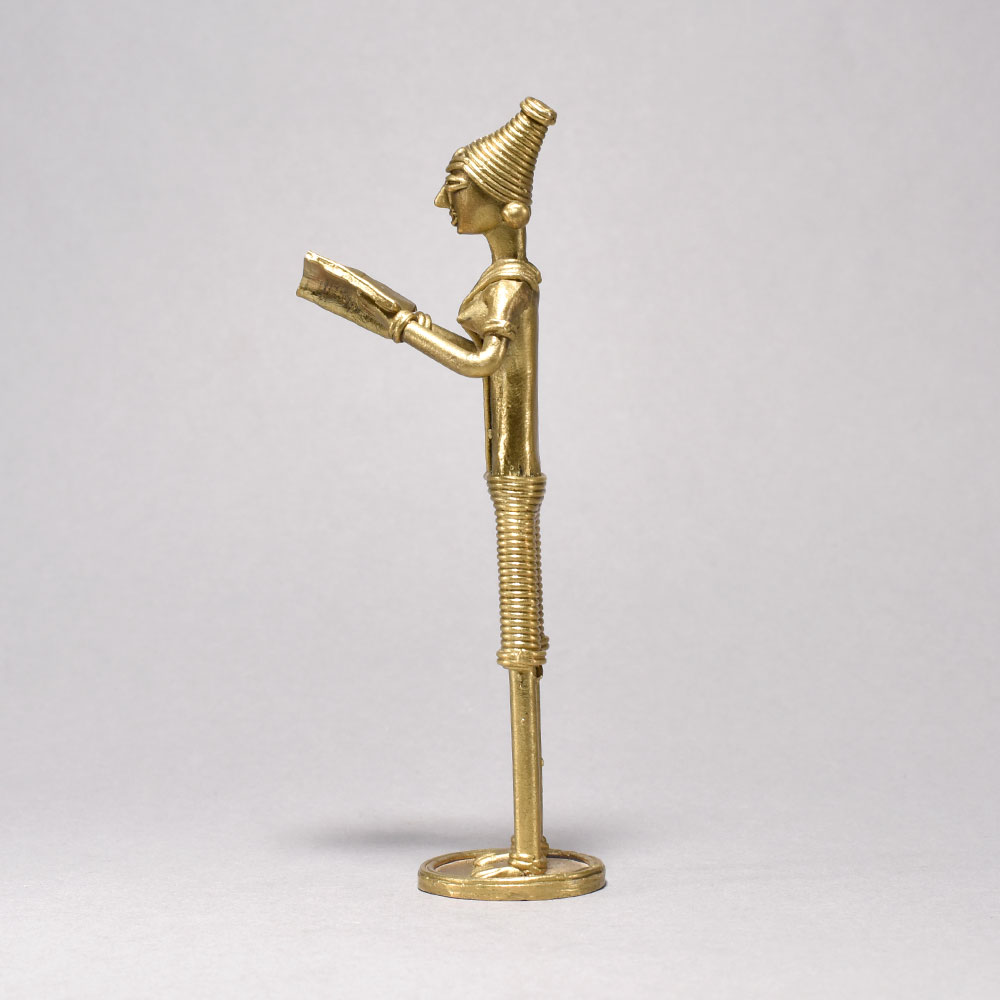 Discover the captivating essence of tribal culture in this stunning metal art piece. Behold the beauty of women in traditional attire, standing proud and immersed in the pages of a book - a testament to the power of knowledge and the richness of Orissa art.This exquisite artwork transports you to the heart of a tribal community, where knowledge and tradition intertwine. The intricate detailing and lifelike figures invite you to pause and appreciate the depth of this cultural expression. Display this masterpiece in your home to infuse your space with the inspiring spirit of these remarkable women. Whether you're an art enthusiast, a lover of global culture, or simply seeking a captivating conversation piece, this tribal women sculpture is a must-have. Immerse yourself in the rich heritage it represents and let it inspire you to explore the diversity of the world. Handcrafted metal sculpture from Orissa, India This timeless piece is handcrafted by skilled artisans using time-honored techniques, ensuring each creation is truly one of a kind. Its versatile design makes it suitable for living rooms, bedrooms, offices, or meditation spaces, bringing a sense of heritage and style wherever it is displayed.