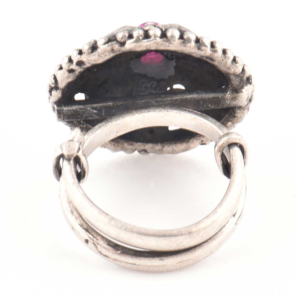 Starry and decorative border 92.5 Sterling silver ring with amethyst stone studded in the ring gives a very royal and elegant feel to the ring. Worn by girls , brides , friends sisters, cousins and acquaintances.