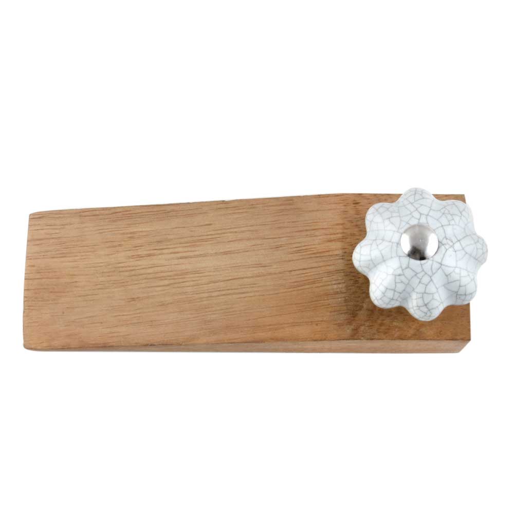 Handmade Ceramic and Wooden Door Stopper.Wooden Door Stopper with a Ceramic Knob to Carry it Easily. This Wooden Door Stopper has Glue Dots under it to Ensure that it does not Slip. It is Handmade by the Craftsmen of India and this Innovative Door Stopper won't Disappoint You.