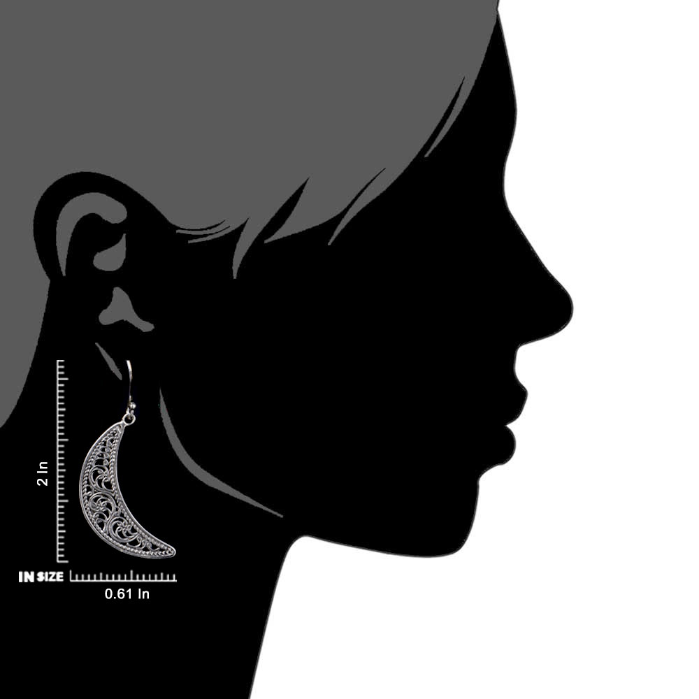 Add a festive element to your outfit with these charming crescent moon shaped filigree sterling silver earrings handcrafted by artisan of India. . The design features beautiful, double-sided butterflies fluttering their wings. The wings are textured which gives depth to the piece handmade sterling silver drop earrings are the ideal gifts for birthdays, wedding and anniversary gift.