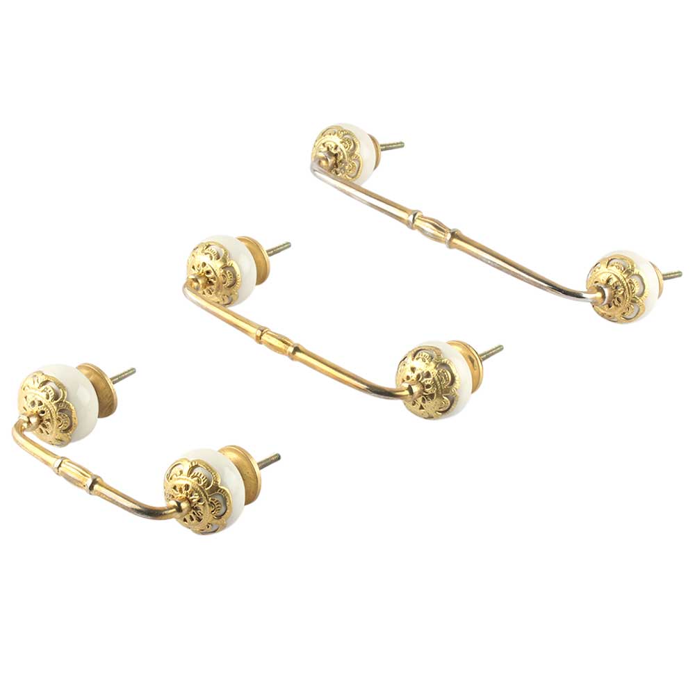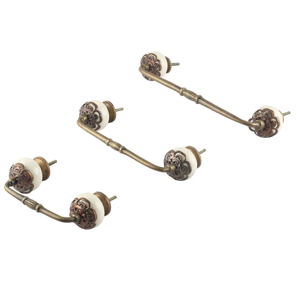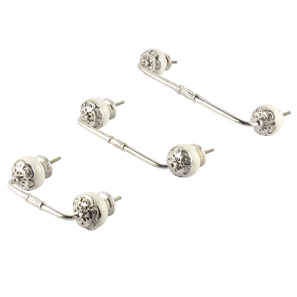 Strewn Cream Ceramic Bridge Handle. Ideal for Drawer, Dresser, Cabinet, Wardrobe, Cupboard and Almirah.