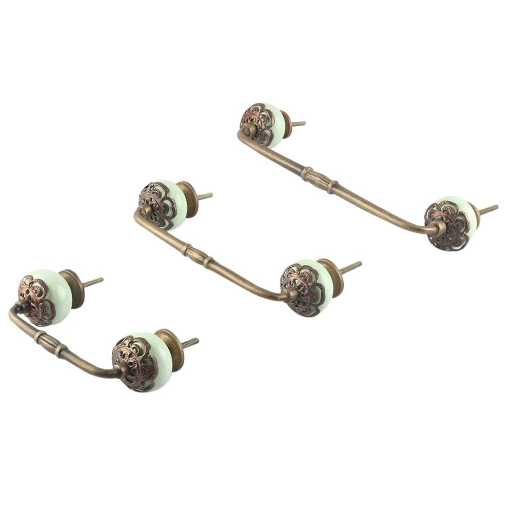 Strewn Light Green Ceramic Bridge Handle. Ideal for Drawer, Dresser, Cabinet, Wardrobe, Cupboard and Almirah.