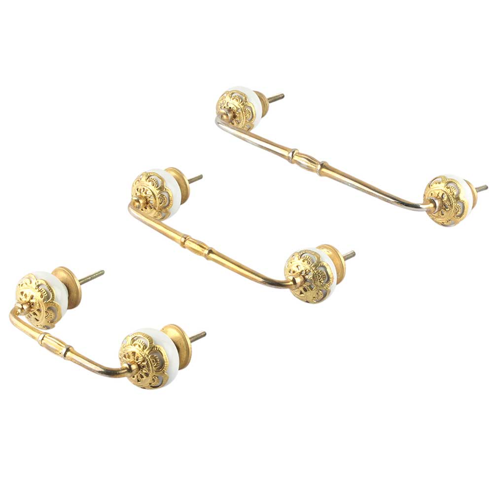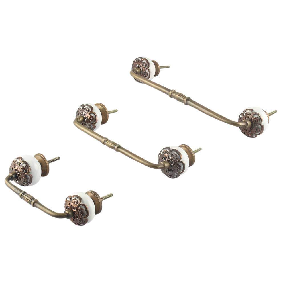 Strewn White Ceramic Bridge Handle. Ideal for Drawer, Dresser, Cabinet, Wardrobe, Cupboard and Almirah.