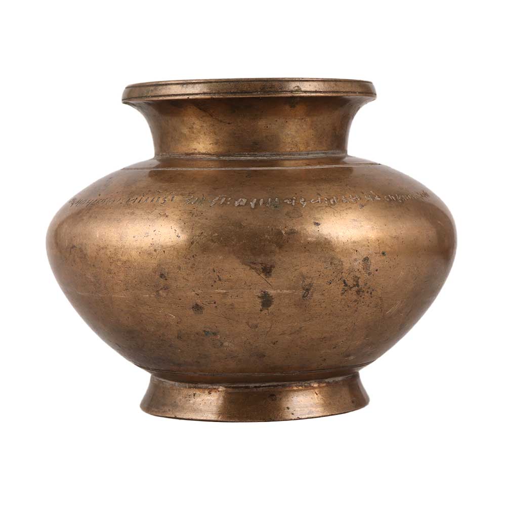 A brass water pot or lota is an essential item in many Hindu rituals and ceremonies. It is often used during havans and other auspicious functions to hold holy water. The pot's shiny, golden exterior symbolizes purity and sanctity, and its smooth, curved shape represents the feminine form. In temples and homes, the brass water pot is used to spread positive energy in the surrounding environment. The water within the pot is believed to have the power to purify and heal, making it an important part of many spiritual practices. With its intricate detailing and traditional design, a brass water pot is a beautiful and meaningful addition to any home or place of worship. A gift for every special, festive and auspicious occasions to your loved ones.