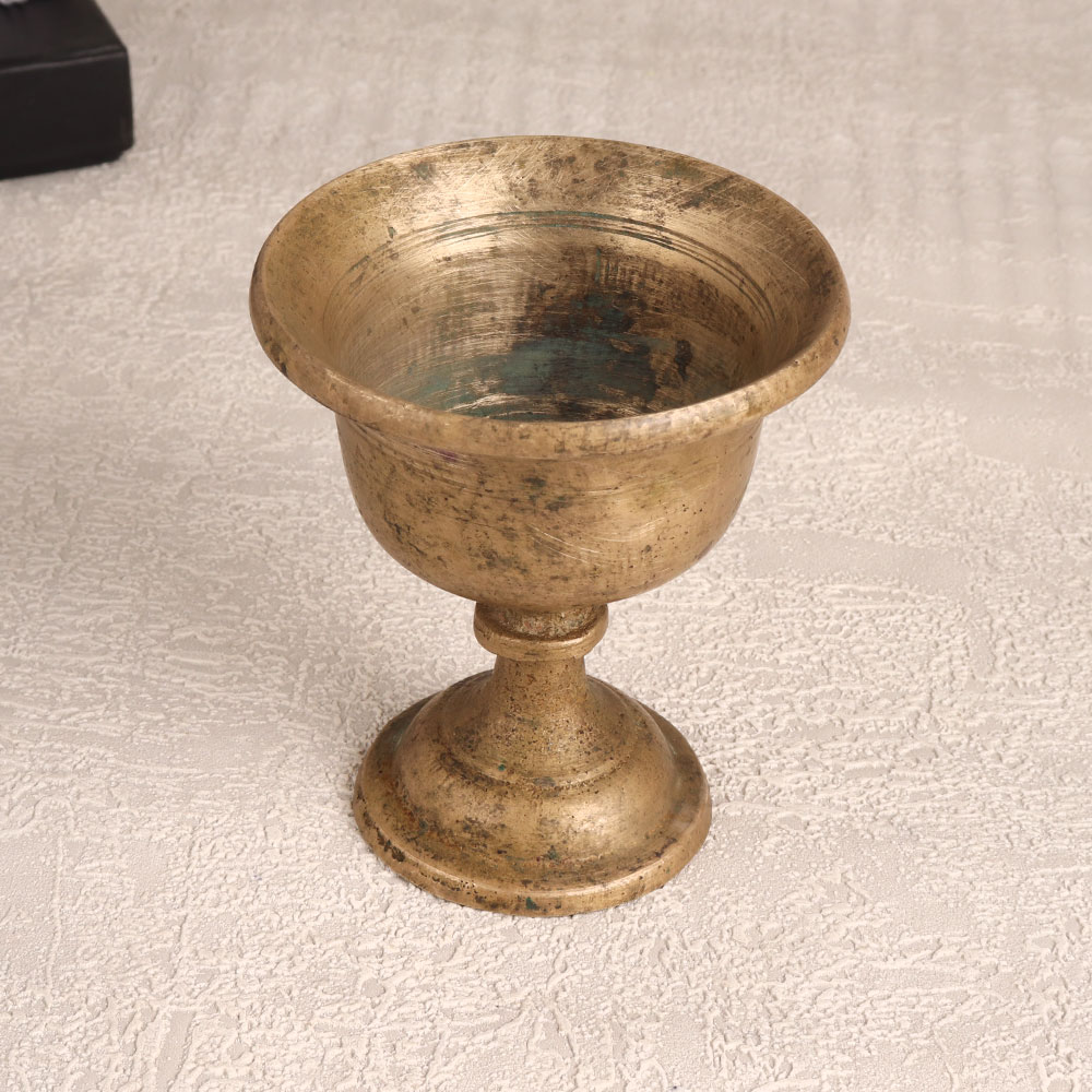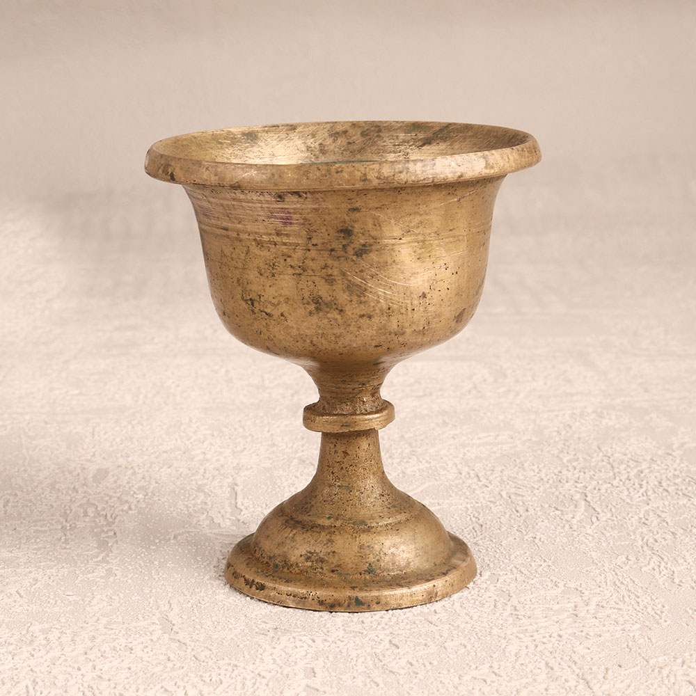 Enhance your spiritual and decorative ambiance with this Vintage Brass Holy Kumkum Bowl Cup which is a true testament to South Indian artistry. Meticulously crafted by professional Indian artisans, this masterpiece is a celebration of tradition and craftsmanship. Handmade with precision and care, this kumkum bowl showcases a stunning antique brown finish, adding a touch of timeless elegance to any setting. Crafted from high-quality brass, it not only exudes an aura of authenticity but also ensures longevity, making it a cherished heirloom for generations to come. This versatile piece serves a dual purpose as both a prayer accessory for holding kumkum, tilak, or bindi, and a captivating decor item. Whether you place it in your home, office, restaurant, hotel, or cafe's prayer room, it will infuse a sense of reverence and aesthetics into the space. As a thoughtful and meaningful gift, this kumkum bowl is perfect for special, festive, or auspicious occasions. Share the blessings of tradition and artistry with your loved ones by presenting them with this mesmerizing piece, which captures the essence of South Indian culture in every detail.