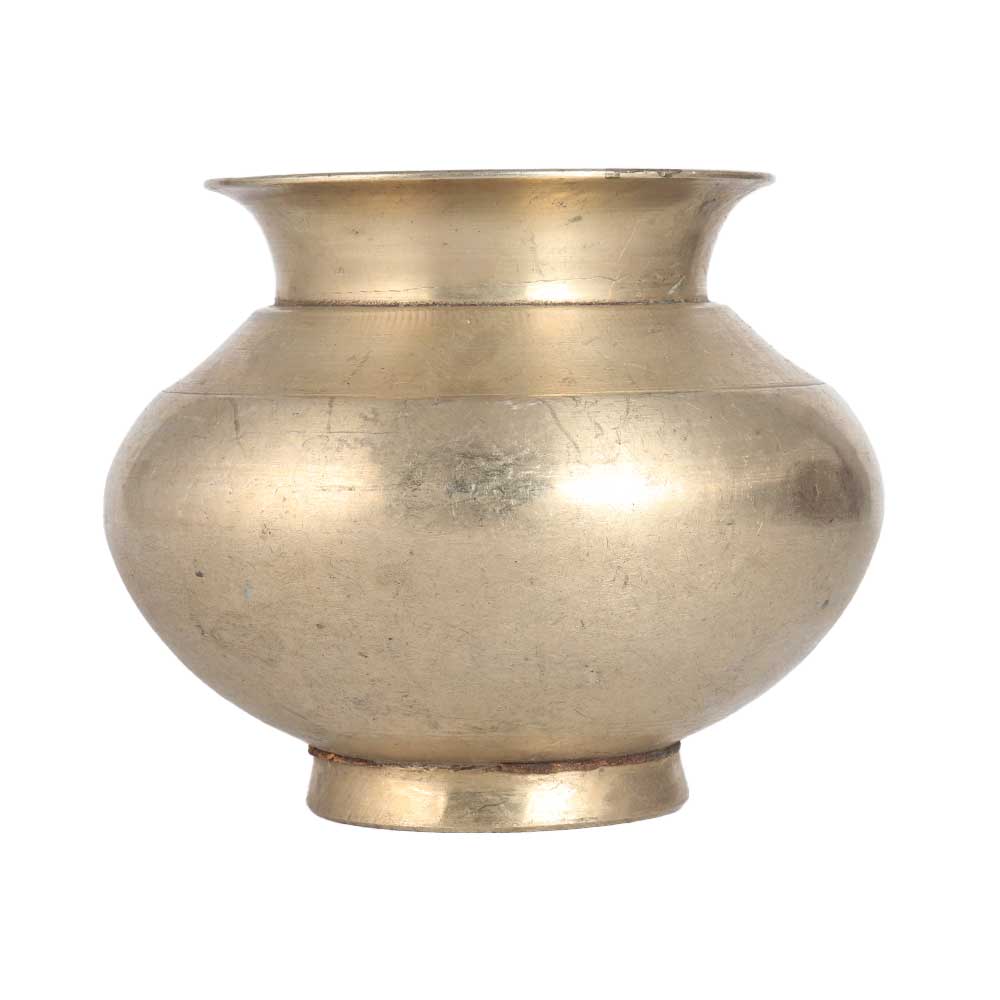 A sturdy looking holy water pot or lota used in Hindu rituals to store water, rice and milk. Place this exquisite decorative piece on your table, shelf, altar, reception counter or bill counter. Enhance your home, office, restaurant, hotel, spa, cafe or shop interior. Since ancient times, water pots or lota have been used in Hindu rituals and auspicious functions. This high quality bell metal water pot leaves a remarkable impression in decoration. It is handmade by skilled Indian artisans from South India using ancient methods. An anniversary, wedding, thanksgiving, housewarming, birthday or festive gift for your family, friends or relatives.