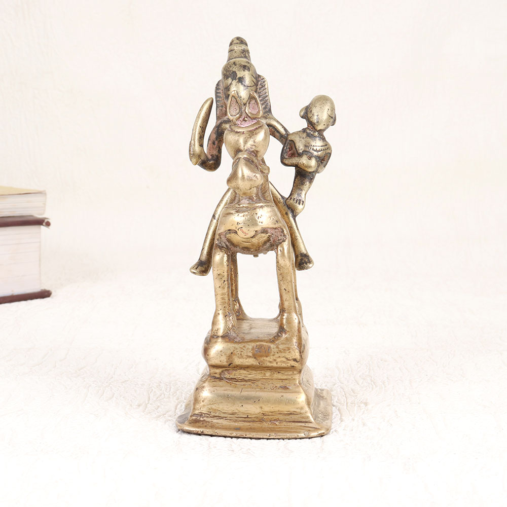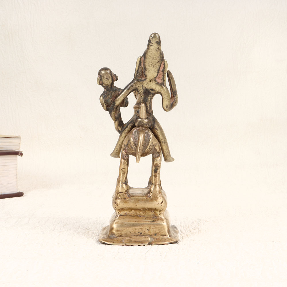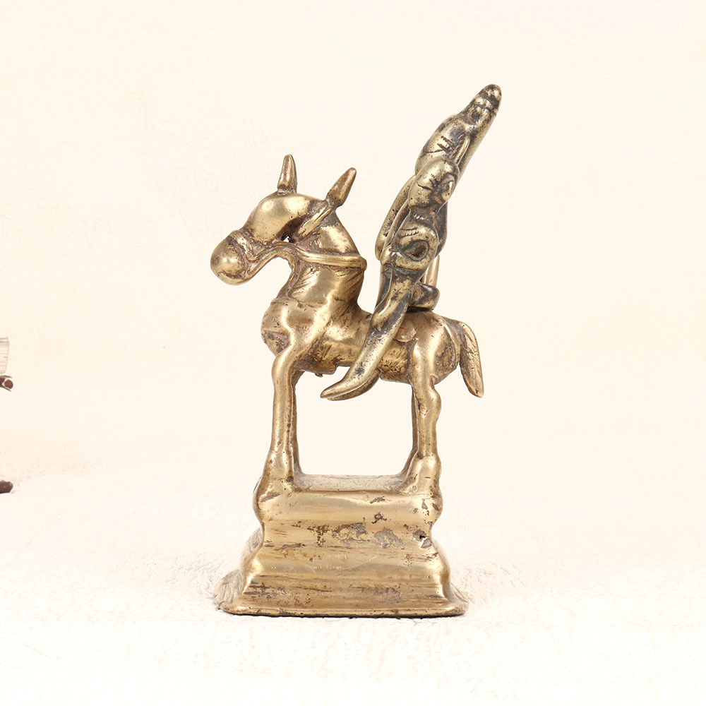 Buy a Vintage Brass Horse Statue with Rider online and get a hassle free delivery right at your doorstep. Crafted by highly skilled and experienced Indian artisans, this masterpiece is more than a decorative item; it is a symbol of tradition and spirituality. The statue, featuring a meticulous handmade design, is cast from high-quality brass, showcasing the artisans' dedication to precision and craftsmanship. With its antique brown finish, this unique statue not only exudes timeless charm but also serves as a spiritual companion during prayer. Its vintage allure makes it a versatile addition to various settings, including homes, offices, restaurants, hotels, and cafes. Elevate the aesthetic of any space with this captivating piece, as it effortlessly blends history and artistry. Ideal for collectors with an appreciation for vintage artefacts, this brass horse statue is a noteworthy addition to any curated collection. Furthermore, it makes for a thoughtful and culturally rich gift for your family, friends or relatives during special, festive, or auspicious occasions, adding a touch of tradition and elegance to their lives. Embrace the heritage and craftsmanship of West India with this remarkable brass horse statue, a timeless testament to the region's artistic legacy.