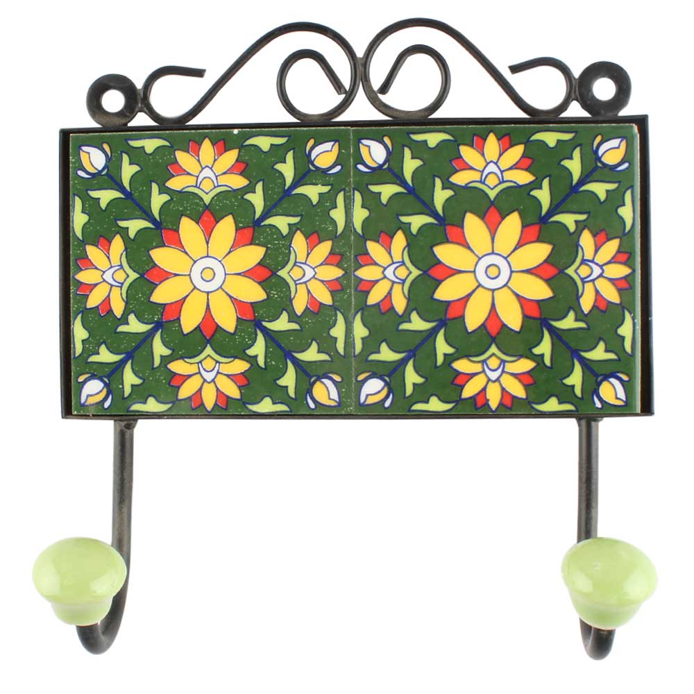 Sunflower Ceramic Tile Wall Hook. When Put on Wall or Cabinet It is An Art in Itself. The Metal Part of this Hook is Black Powder Coated.