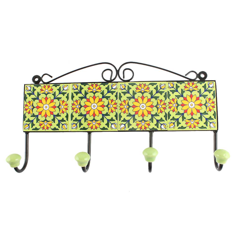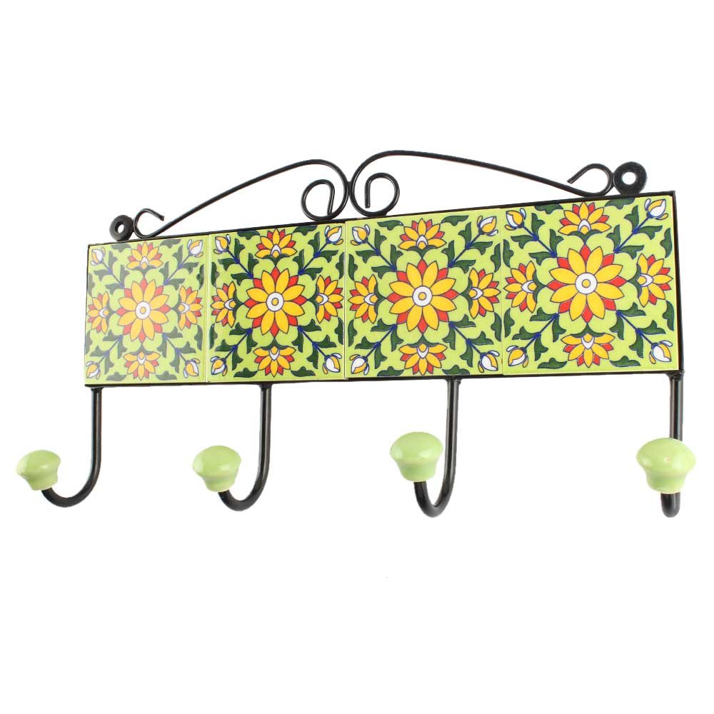 Sunflower Ceramic Tile Wall Hook in Pea Green. When Put on Wall or Cabinet It is An Art in Itself. The Metal Part of this Hook is Black Powder Coated.