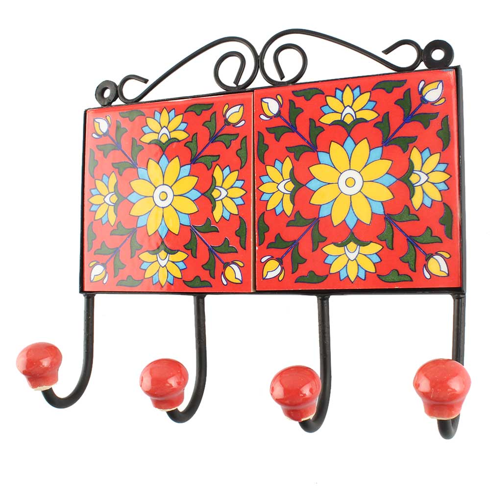 Sunflower Ceramic Tile Wall Hook in Yellow. When Put on Wall or Cabinet It is An Art in Itself. The Metal Part of this Hook is Black Powder Coated.