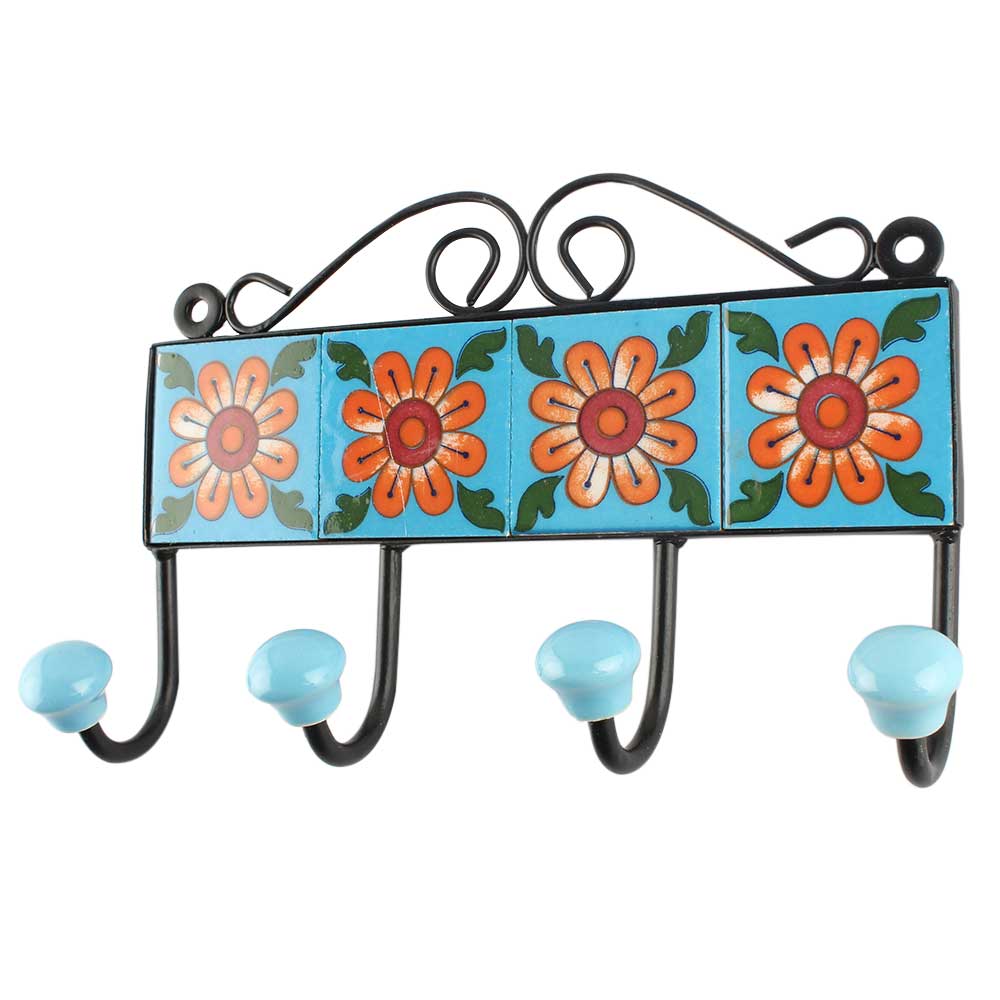 Sunflower Ceramic Tiles Hooks. When Put on Wall or Cabinet It is An Art in Itself. The Metal Part of this Hook is Black Powder Coated.