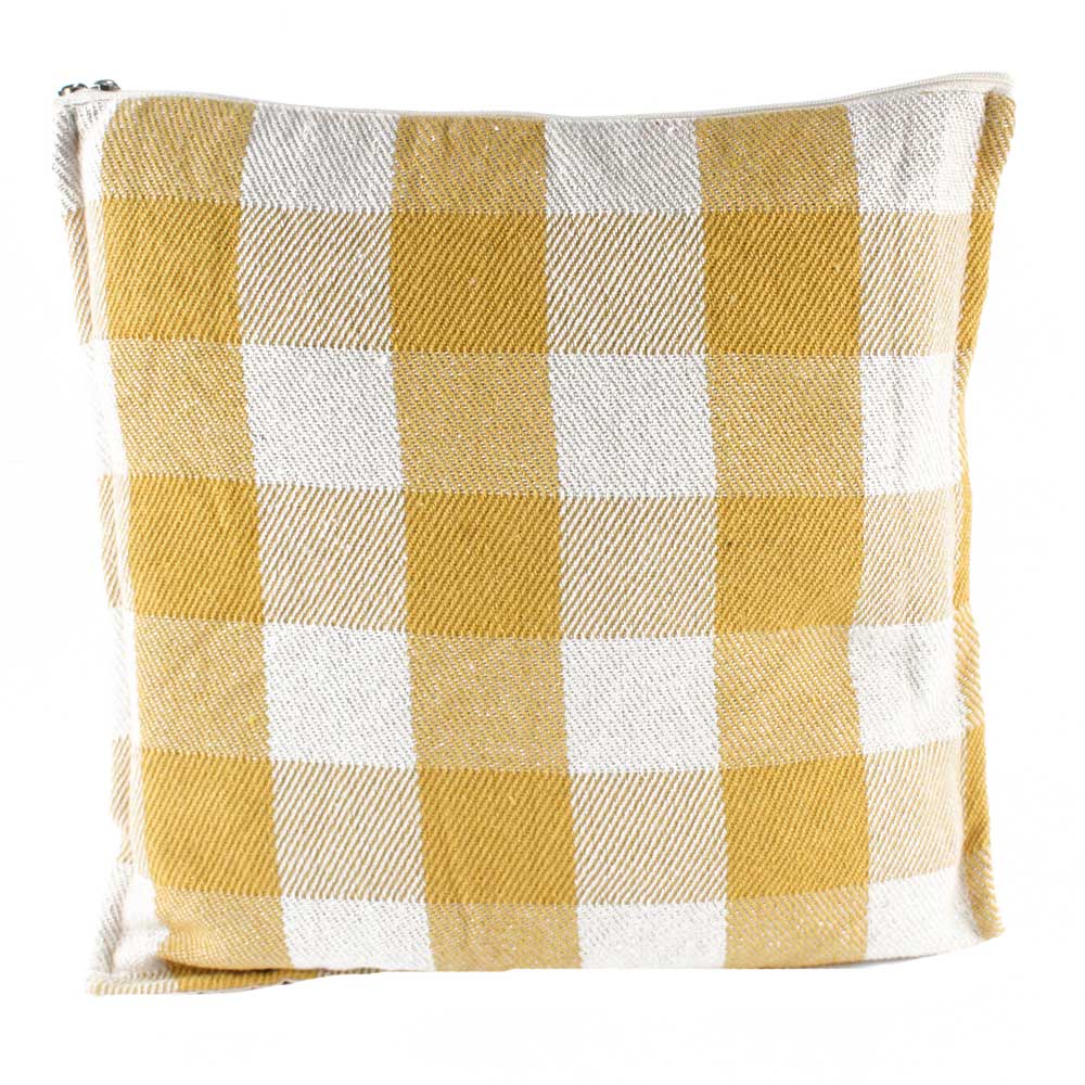 Timeless checks are always in style. This decorative pillow is made with strie yarns for a warm, rustic farmhouse atmosphere. Its flexible yellow and off-white check design can be used alone or in conjunction with other decor.