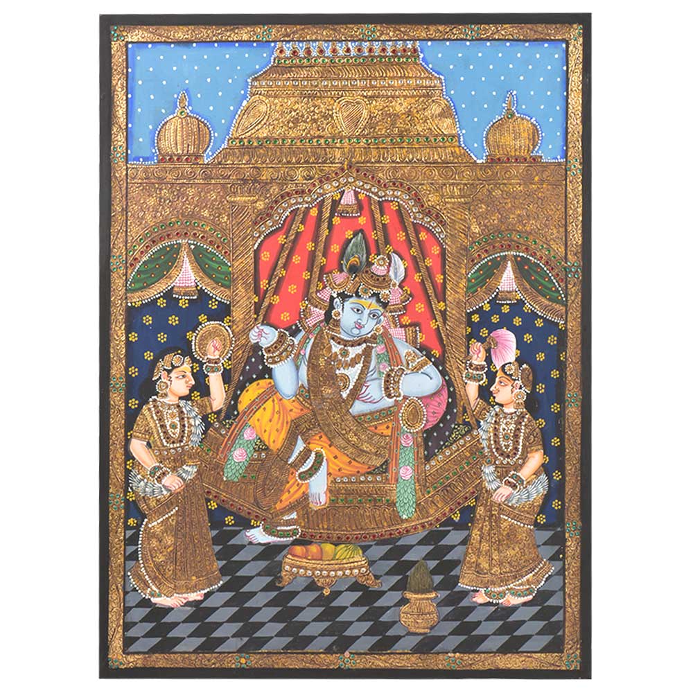 Krishna is the most attractive, joyful space within all of us. When there is no restlessness, worry or desire in the mind, you are able to get deep rest. And it is in deep rest that Krishna is born. This tanjore painting is a beautiful reminder of that consciousness. Bring home a piece of this art and enliven the atmosphere of your home.