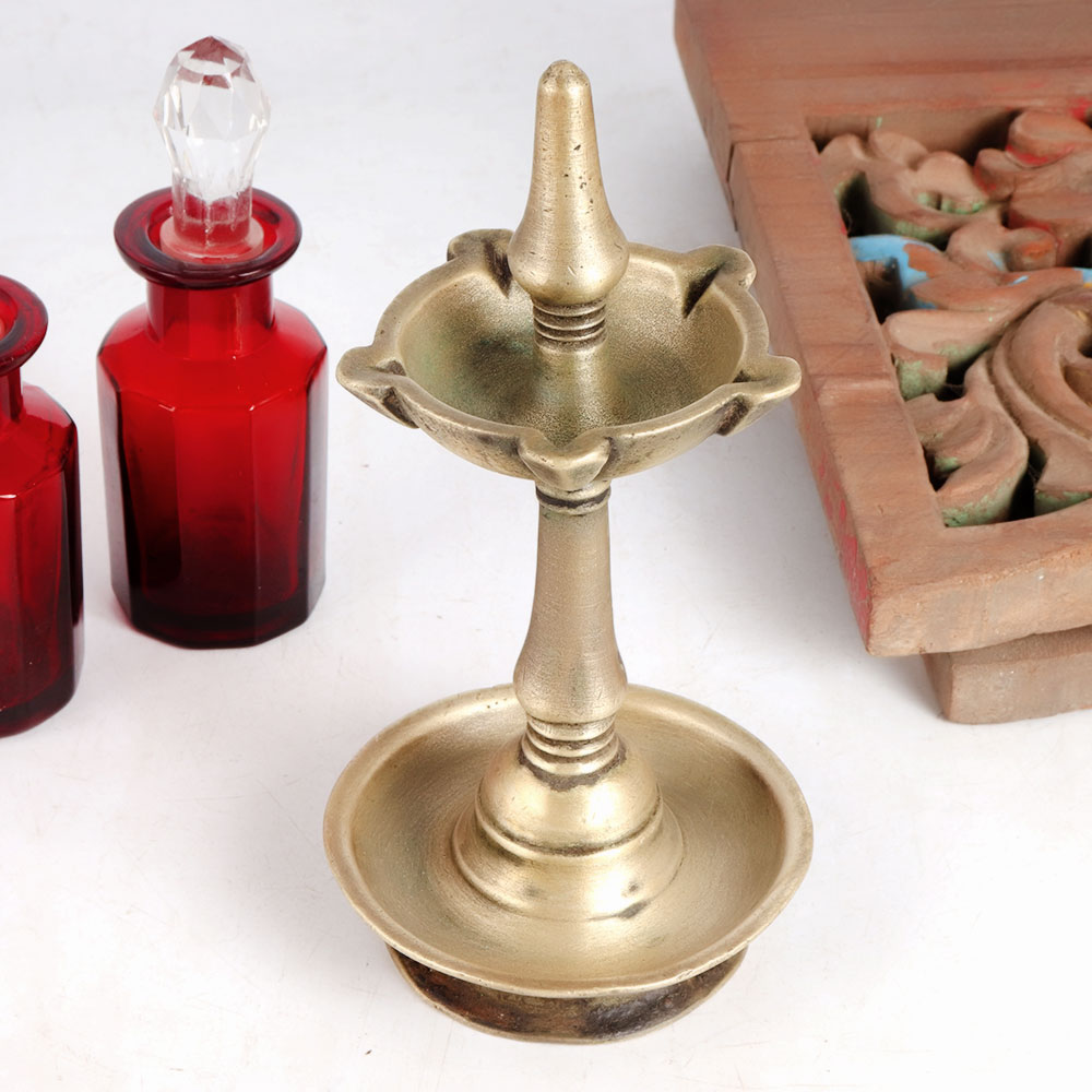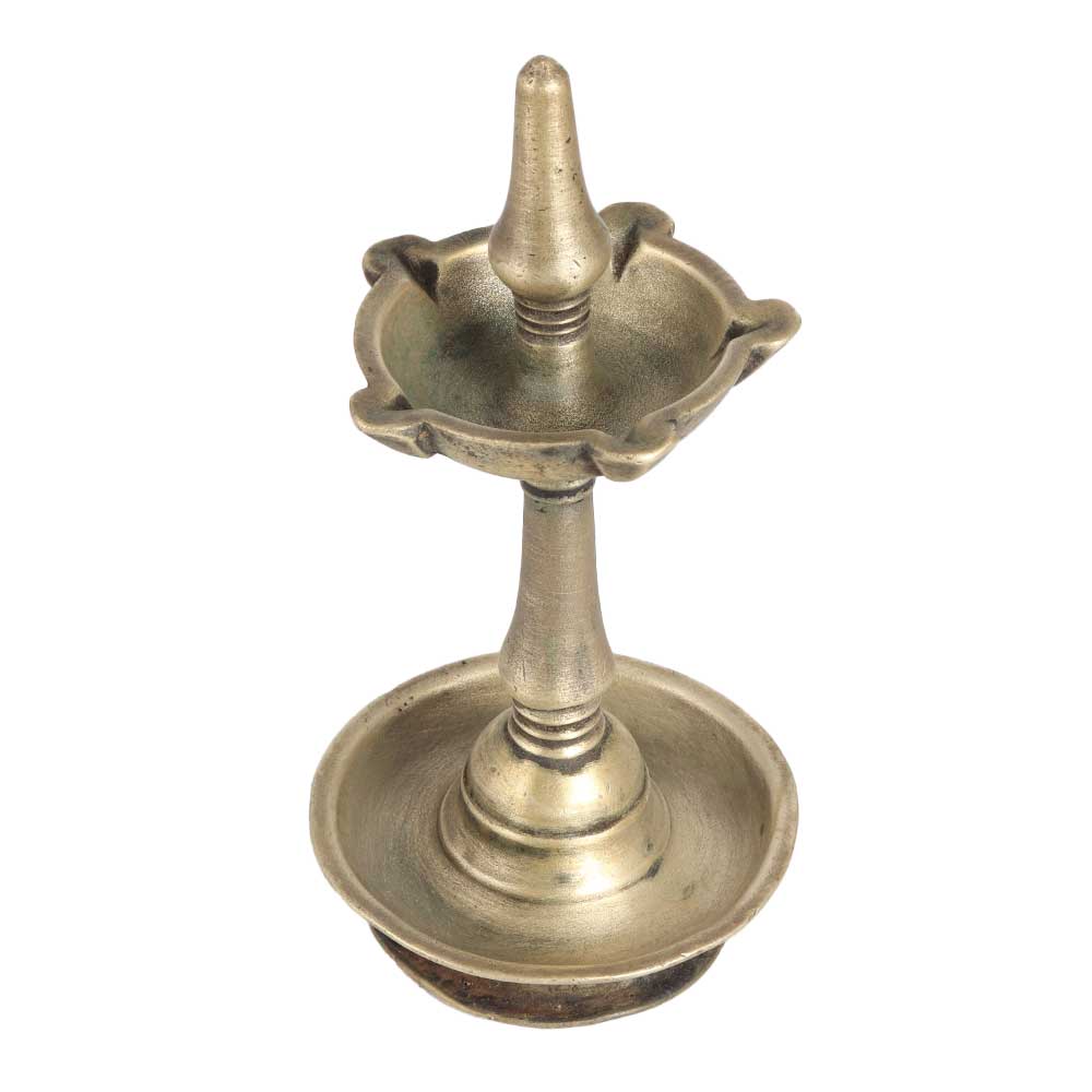 Decorate your home, office, restaurant, hotel or spa with an oil lamp made of high quality brass. An incredible lamp with a matte finish and a unique design. This brass oil lamp is handmade by highly skilled and experienced Indian artisans from South India. For centuries, oil lamps have been used in Indian temples to worship the gods and on special occasions to create a positive flair. Use this oil lamp with mustard oil or ghee to light 5 jyots at a time with a cotton wick. Give your home or hotel interior an alluring look with this brass oil lamp from South India. Gift it to your family, friend or relative on a special and festive occasion.