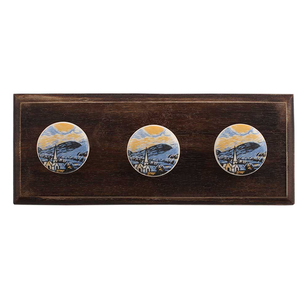 The Starry Night Multicolor Ceramic Wooden Hook. A Perfect Complement to the Soft Tone of the Wood are these White Traditional Hat &Amp; Coat Hook Made of Genuine Porcelain and Brass. It can be use to Hang Jewellery, Leashes, Towels, Scarves, Light Weight Sweaters, Caps Etc.