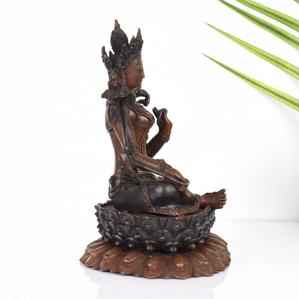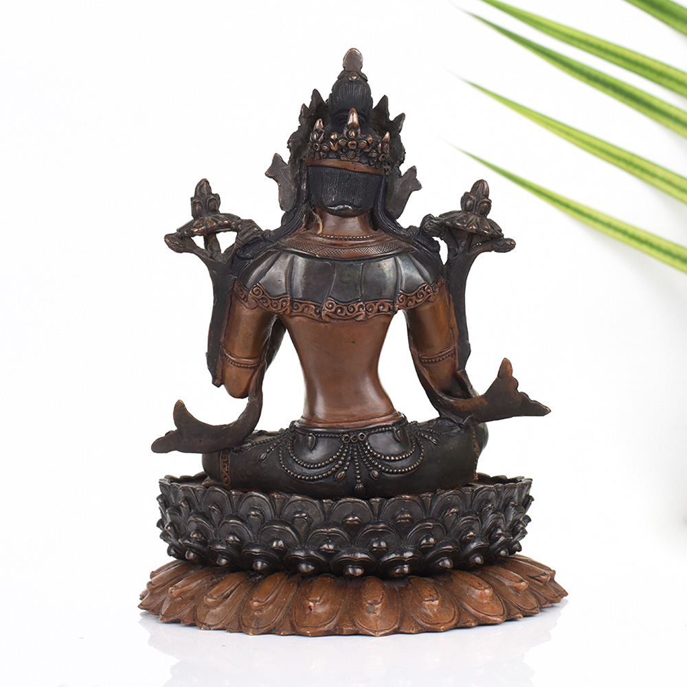 Unlock the transformative power of the Tibetan Goddess Tara with this captivating copper statue. Crafted with meticulous attention to detail, this exquisite piece invites you to embark on a journey of spiritual enlightenment and inner peace. The Goddess Tara is a beloved figure in Tibetan Buddhism, renowned for her unwavering compassion and her ability to guide devotees towards enlightenment. As you gaze upon this stunning copper statue, you'll be transported to a realm of tranquility and divine connection, where the Goddess' benevolent presence can inspire you to cultivate your own inner strength and wisdom. Whether you're a seasoned practitioner or new to the world of meditation and spirituality, this Tibetan Art Goddess Tara statue will become a cherished companion on your journey of self-discovery. Display it prominently in your prayer room or meditation space, and let its timeless beauty ignite your passion for personal growth and transformation.