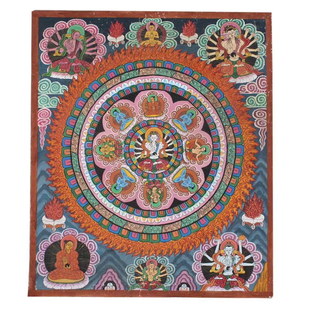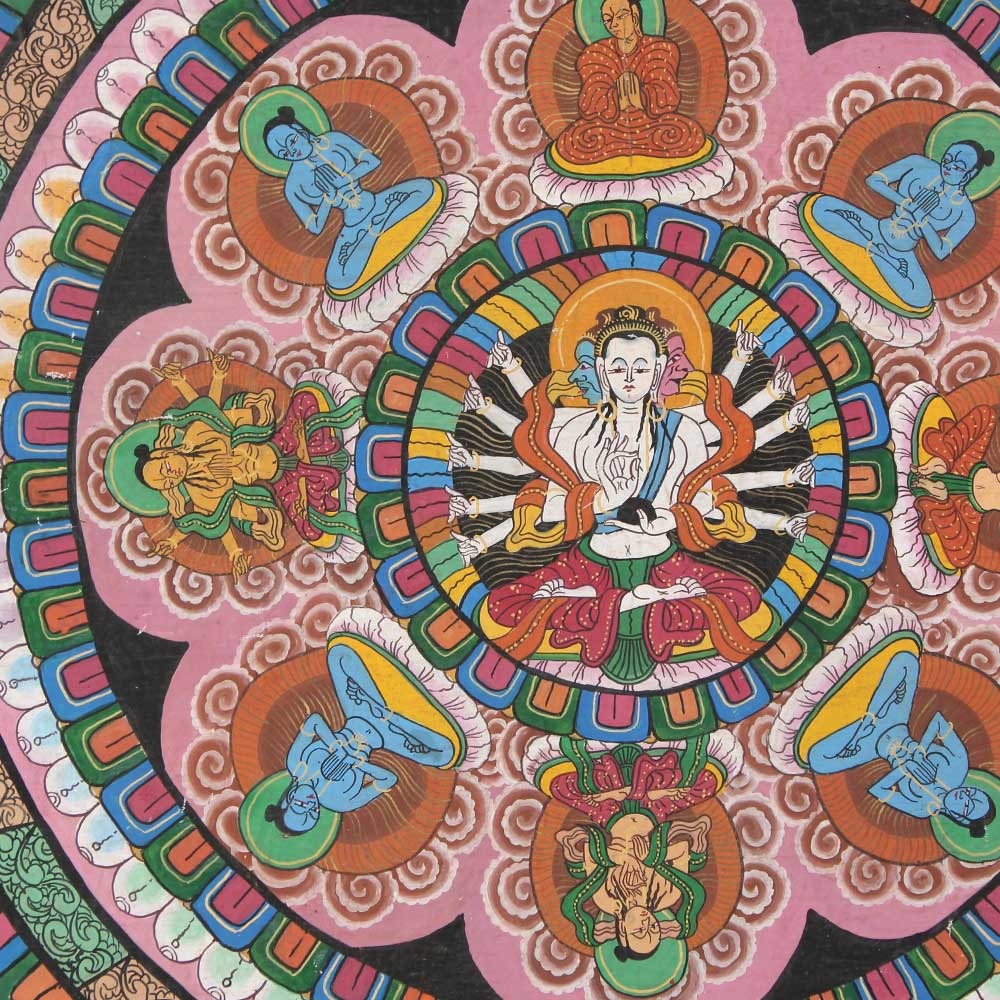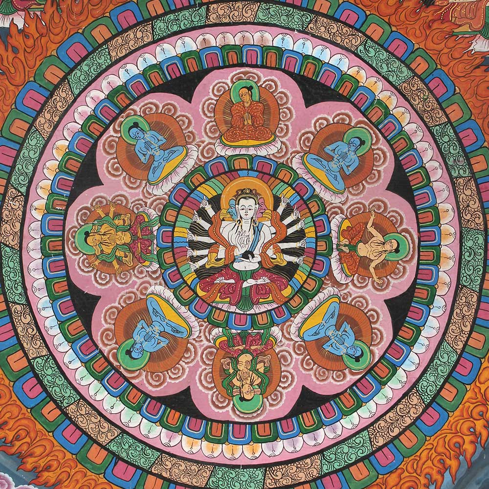 The Buddha mandala is an illustration that is utilised for focus and healing. It's also found in meditation halls. A large circle is surrounded by many smaller circles in the picture. We may detect little Buddha images in the radial lines of the circle. The painting attempts to depict the Buddha in various forms.