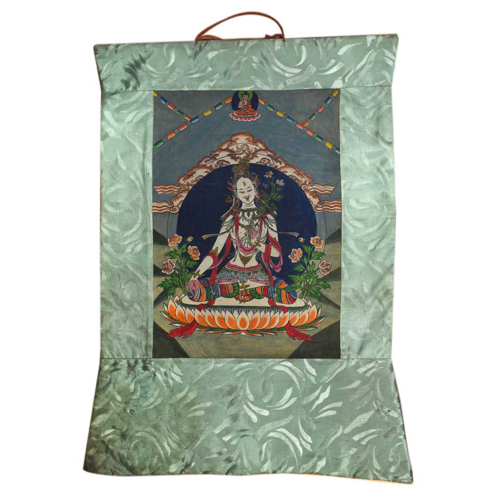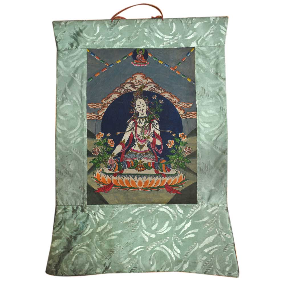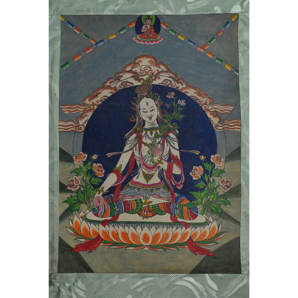Thangkas are Buddhist paintings that are actually painted on cotton or silk. Thangka is a deity-representation and visualization art form. On this thangka, the exquisite White Tara god has been painted by an accomplished artist who has been working in this profession for centuries. Thangkas are lovely to put on the walls of homes, offices, and other public places. Thangkas are particularly useful for meditation. However, thanks are increasingly utilised for both ornamentation and religion.