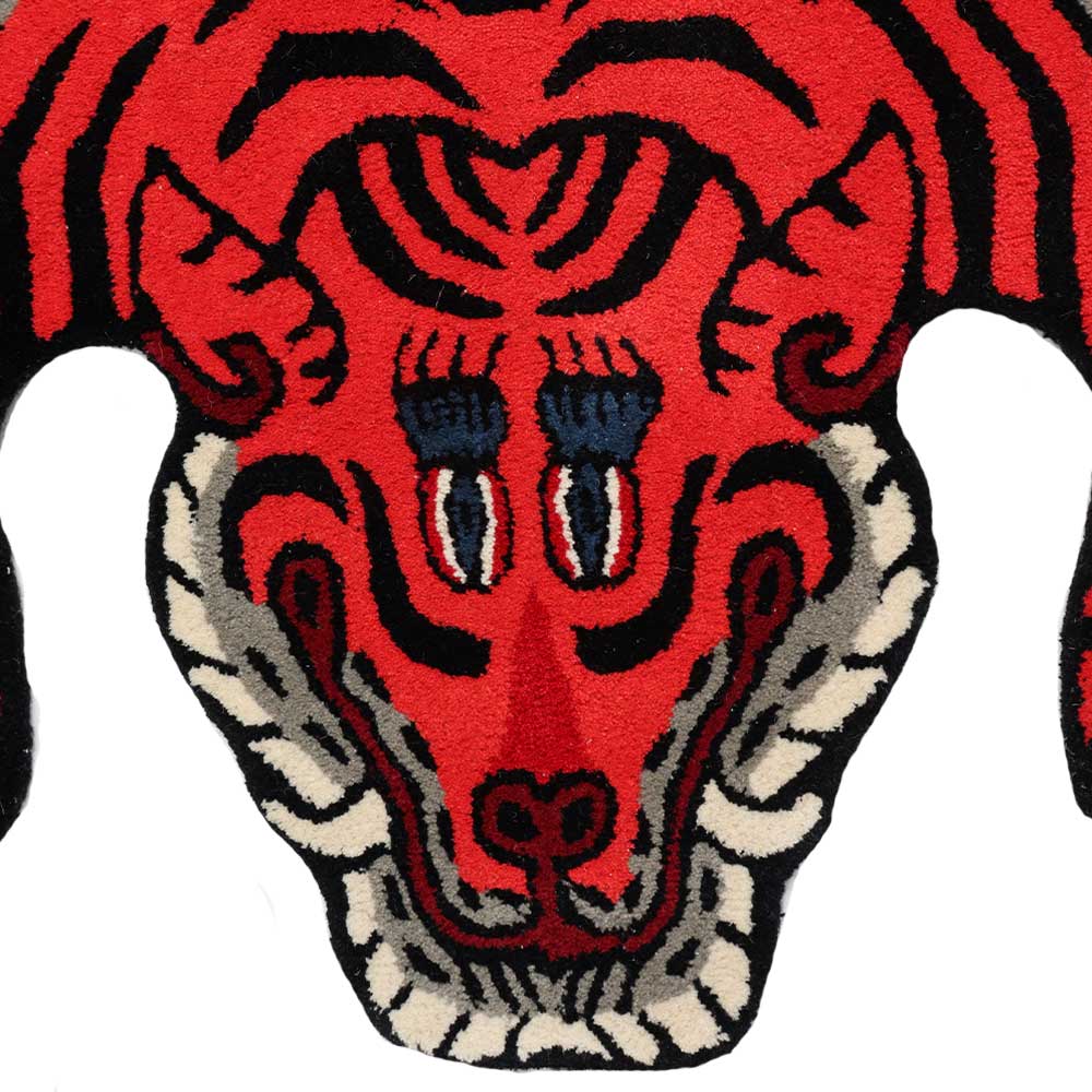 Handmade Tibetan rug of superior quality for meditation and yoga made of 100% wool - A lovely interior piece for a child's room. Everyone needs a protector and a friend. This hand tufted Tibetan tiger rug makes the living room appears warm and cosy. Tiger rugs were popular among Lamas and Tibetan royalty as symbols of great power. Many people do believe that meditating on a tiger rug will provide you with positive energy and will help you improve your meditation practise.