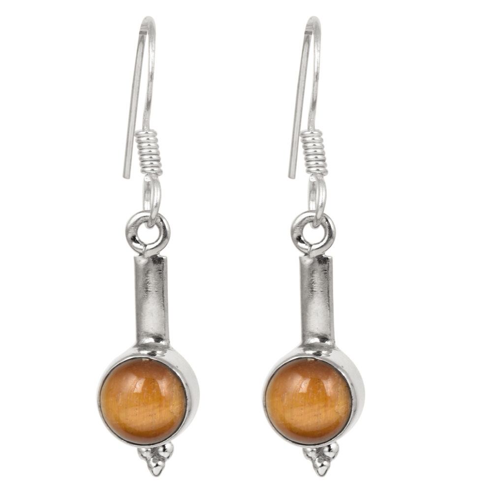 Liven up your bold hues with round Tiger Eye and 925 Sterling silver drop earrings to make it an everyday style statement. Eternal classical design earrings will complement any occasion ethnic wear/ daily / college / party wear.