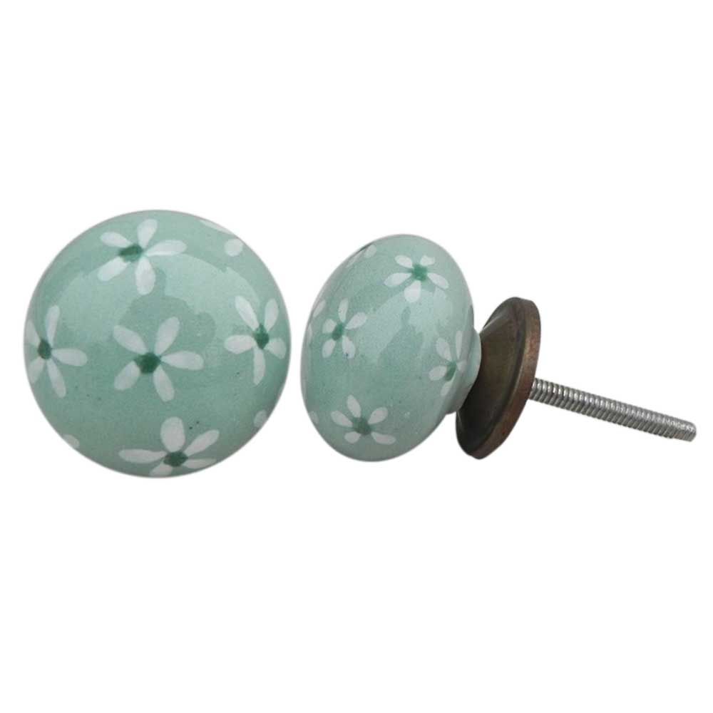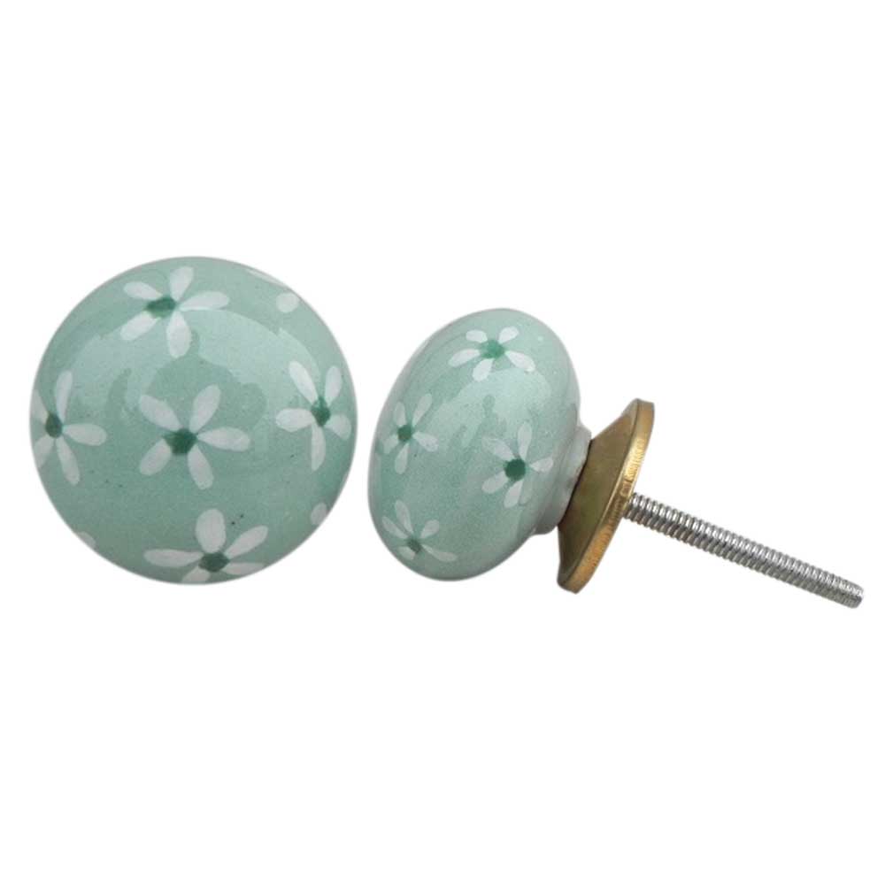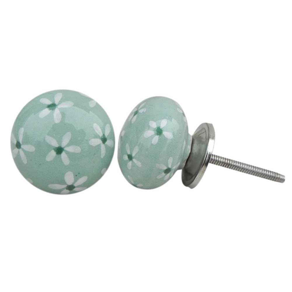 Tiny Flower Flat Ceramic Knob. Ideal for kitchen cabinets, kitchen drawers, dining room, bed room, chest drawers, dressing tables, almirah