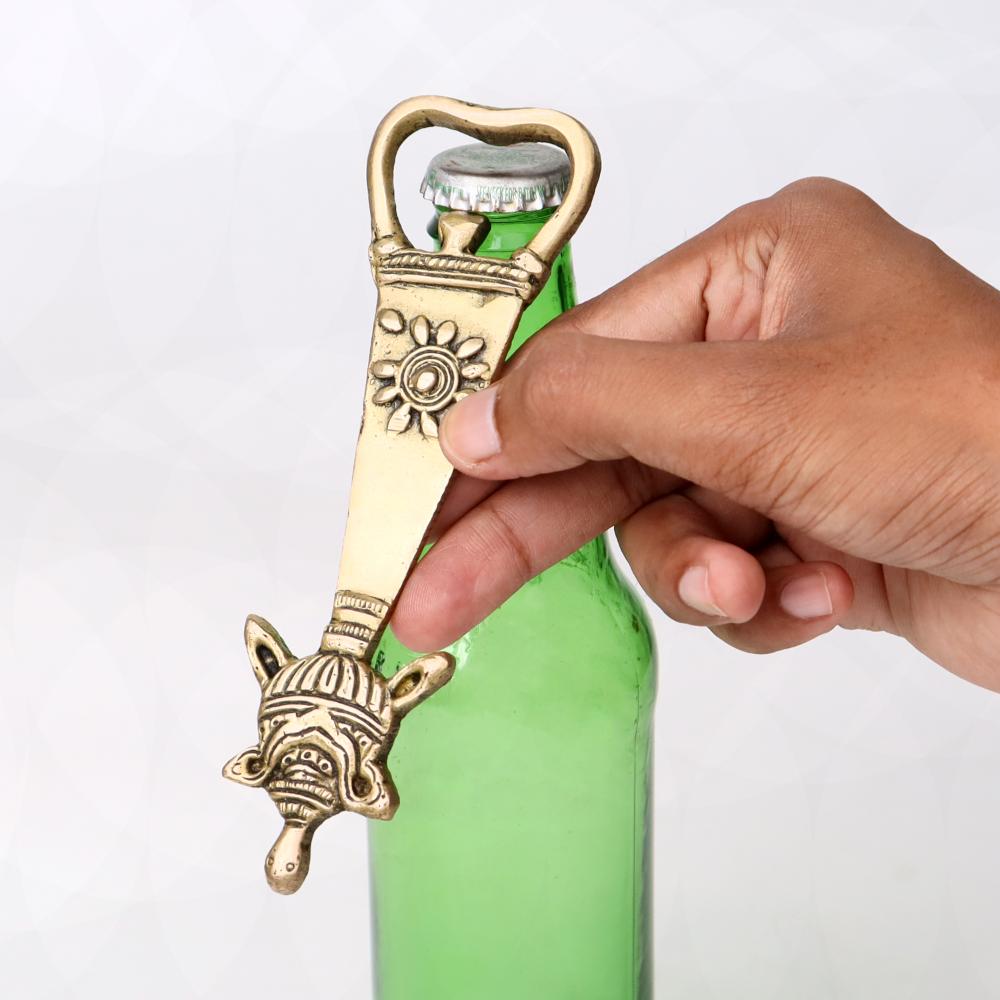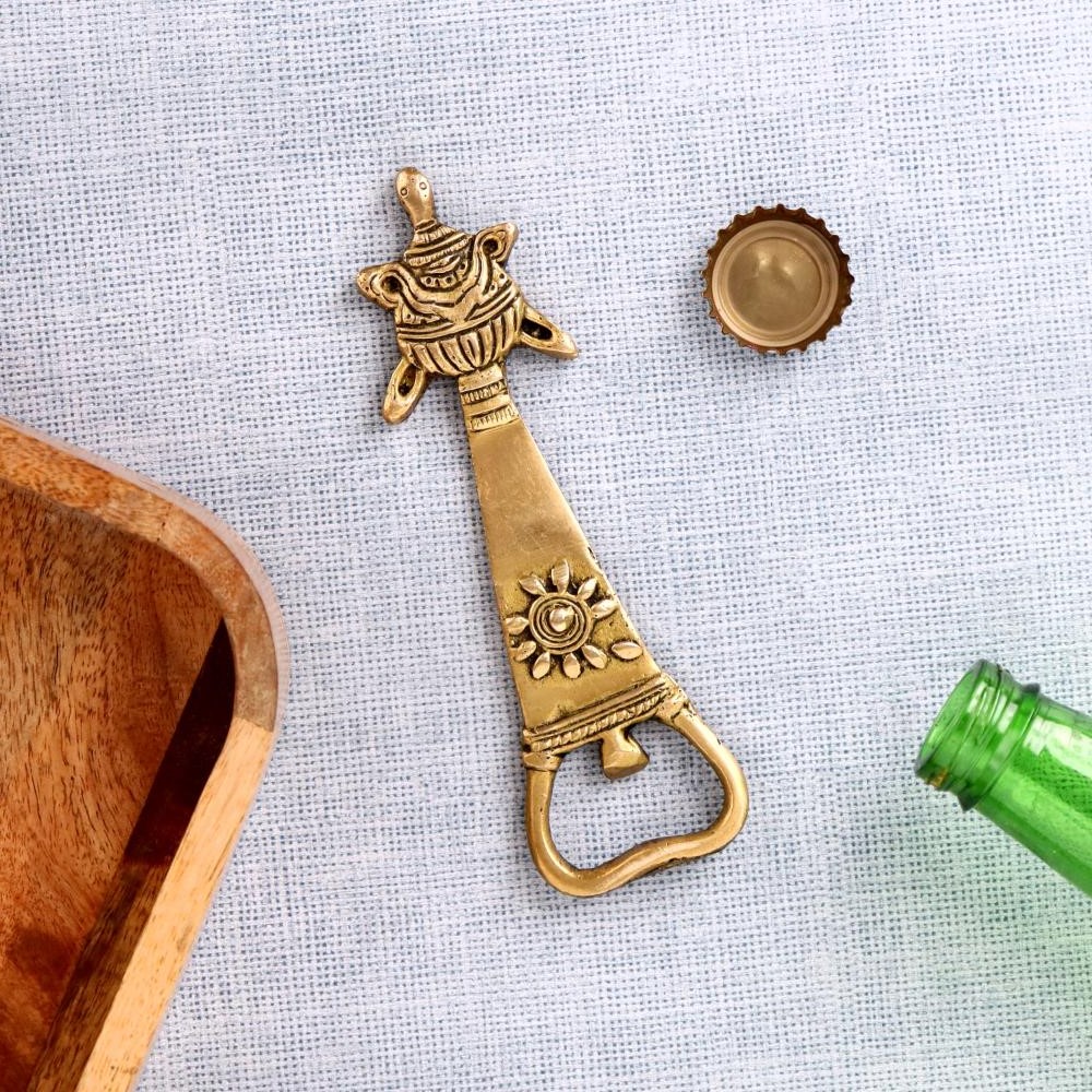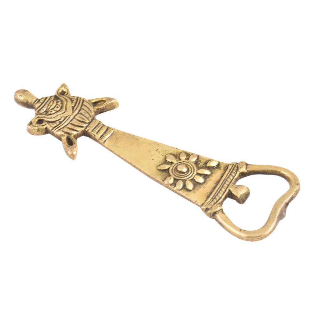 Tortoise Brass Bottle Opener With Tribal Floral Design
