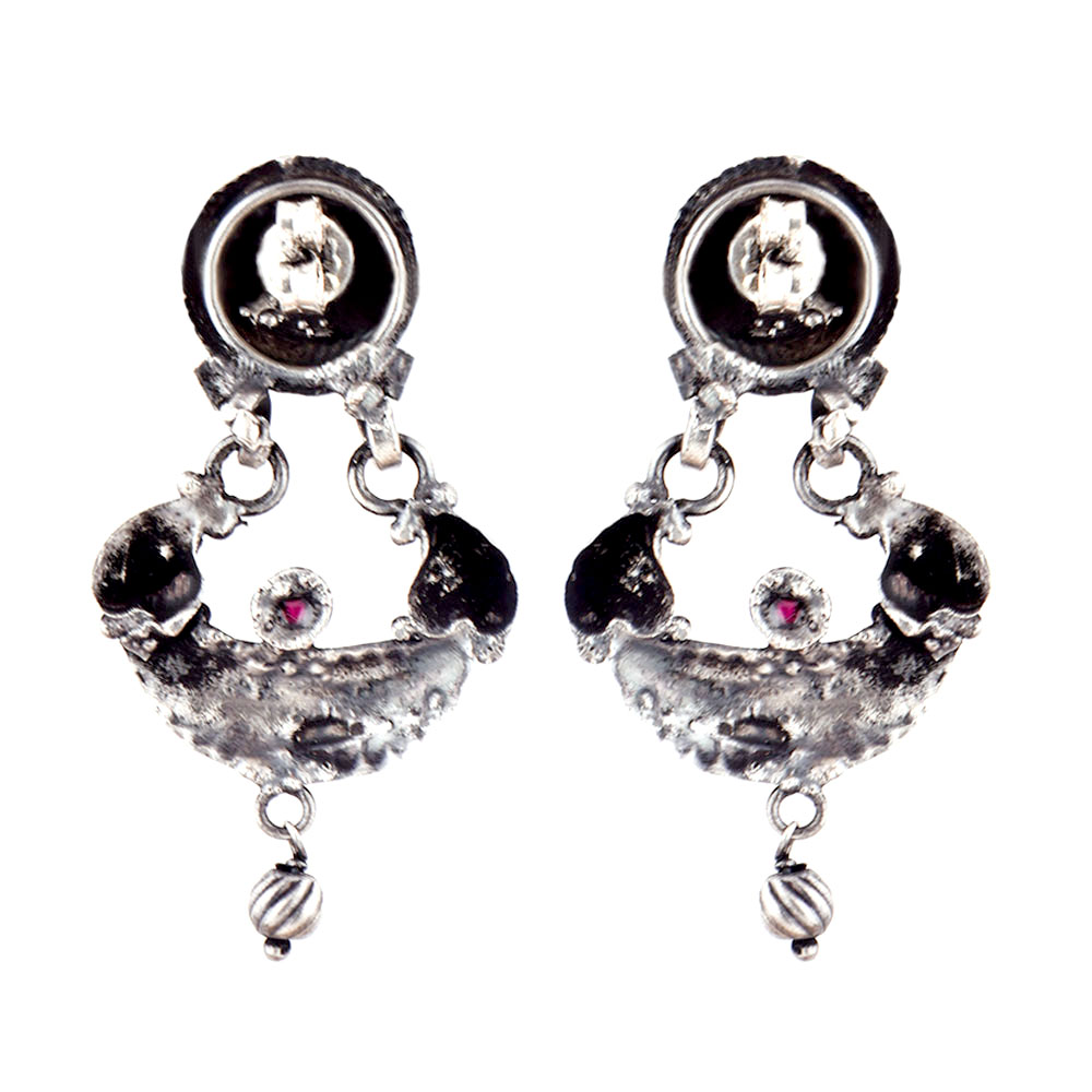 92.5 Sterling Silver Earrings Goddess laxmi with elephants engraved stud with Crescent moon and attached motifs danglers . Team it up with your traditional sari or suit or jeans with kurtis for anniversary, valentine date or other social or office function.