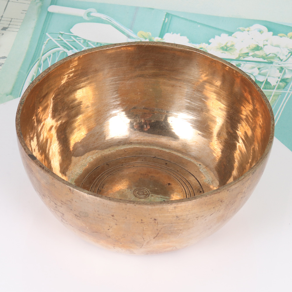 Immerse yourself in the ancient wisdom of Nepal with this captivating bell metal singing bowl. Crafted by skilled artisans using time-honored techniques, this handmade instrument emanates a deep, soothing tone that can transport you to a state of profound relaxation and inner peace. Ideal for meditation, sound healing, and mindfulness practices, the resonant vibrations of this singing bowl can help calm the mind, reduce stress, and cultivate a deeper connection with the present moment. The plain brown finish gives it a rustic, earthy aesthetic that complements any decor, while the durable bell metal construction ensures it will be a cherished part of your wellness routine for years to come. Whether you're seeking to deepen your spiritual practice, create a serene ambiance in your home, or simply indulge in the healing power of sound, this Nepalese singing bowl is a must-have addition to your collection.