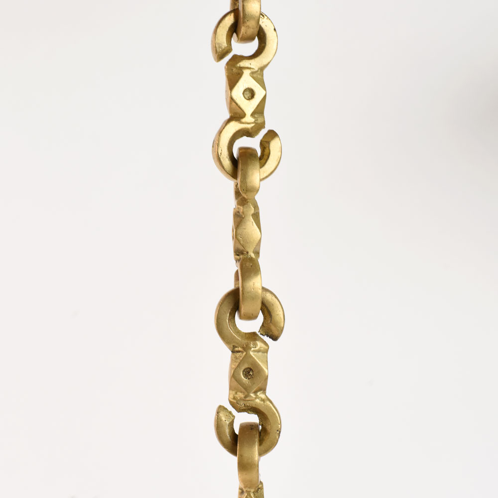 Bring home the timeless charm of South Indian craftsmanship with this vintage brass hanging oil lamp, beautifully designed with an ornate chain and traditional detailing. Hand-cast by skilled artisans, this lamp reflects the ancient art of lamp-making practiced in South Indian temples and heritage homes. Its warm golden tone and sculpted silhouette create a spiritual ambiance, making it perfect for puja rooms, meditation corners, home decor, and festive rituals. The accompanying brass chain allows the lamp to be hung gracefully, while the deep oil reservoir provides a steady flame for long hours. Every curve, ridge, and motif celebrates cultural symbolism, making this piece a cherished collectible for decor lovers and connoisseurs of Indian heritage. Ideal for gifting on festivals, housewarmings, weddings, and spiritual celebrations, this lamp blends tradition with decorative elegance. Whether displayed as a centerpiece or used during rituals, it instantly elevates any space with its sacred glow.