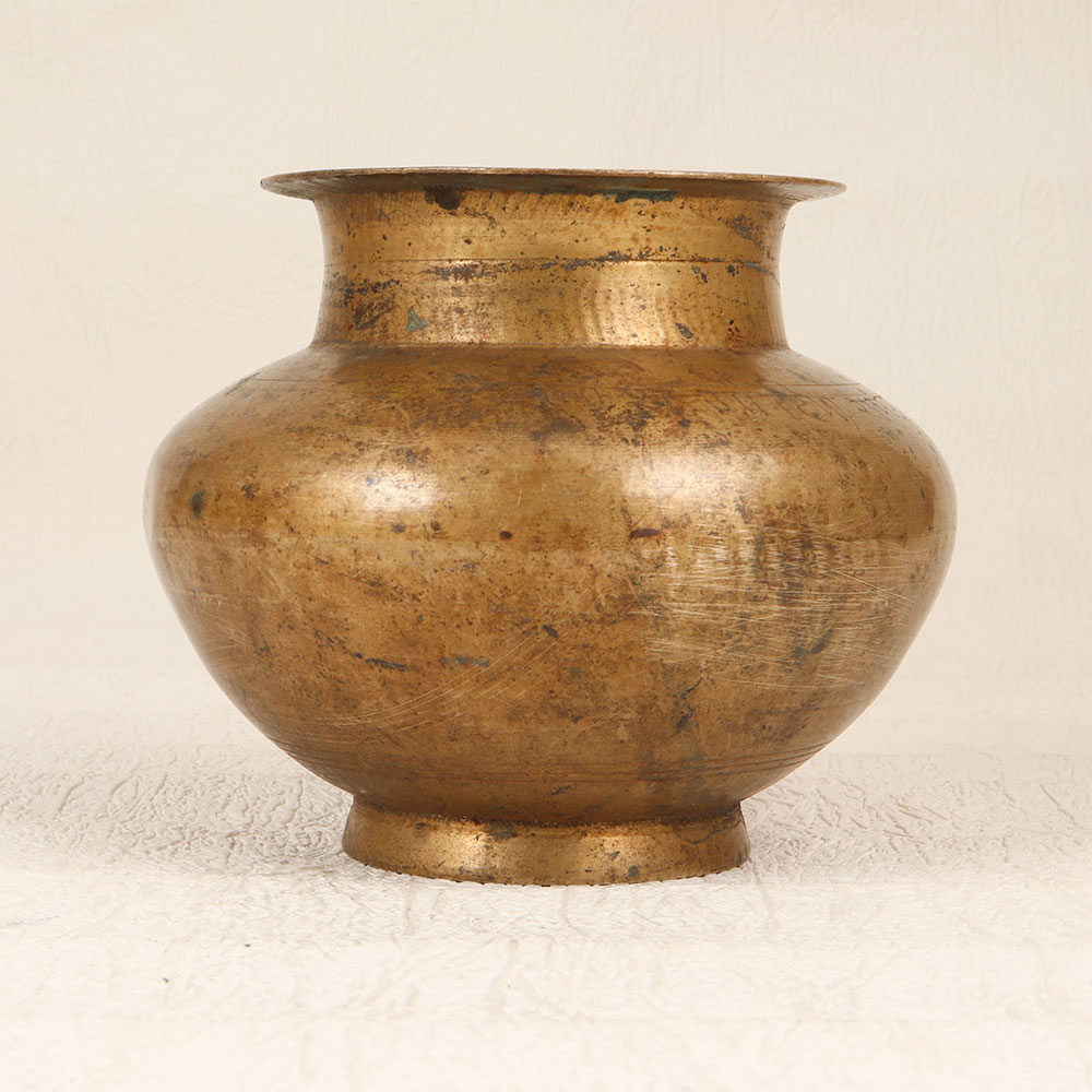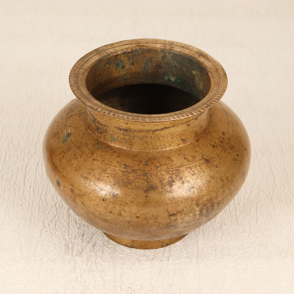 A Vintage Brass Holy Water Pot which is a timeless masterpiece crafted with precision by highly skilled Indian artisans in the revered South Indian Art tradition. This sacred vessel is adorned with an antique brown finish and serves as a symbol of divine purity during prayers, rituals, and havans. Handmade from high-quality brass, this holy water pot embodies the rich cultural heritage of India, showcasing intricate detailing and a distinct vintage charm. Its versatile design makes it a perfect addition to prayer rooms in homes, offices, restaurants, hotels, or cafes, creating an ambiance of spirituality and grace. Beyond its spiritual significance, this pot doubles as an elegant indoor flower pot, adding a touch of antiquity to your living space. Its antique brown finish lends it an air of authenticity, making it a striking piece that can be proudly displayed as part of a vintage collection. For those seeking a thoughtful and meaningful gift, this Vintage Brass Holy Water Pot is an ideal choice. Present it to your family, friends or relatives on special, festive, or auspicious occasions, and share the blessings of tradition and artistry in a single, cherished artefact. Embrace the beauty of spirituality with this handcrafted masterpiece, an embodiment of craftsmanship and devotion.
