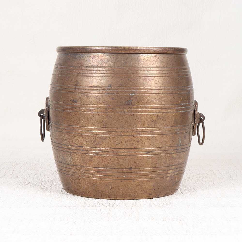 Step back in time with this antique brass planter exuding the elegance of South Indian art. Expertly handcrafted from solid brass, this planter features an understated plain brown finish that enhances its vintage vibe. Display this planter in your living room or bedroom to infuse your space with earthy, vintage charm. Its artisanal design brings to mind treasured antiques, evoking a relaxed and peaceful ambiance. The dark brown finish develops a beautiful patina over time, allowing the planter to fit seamlessly into any rustic or industrial decor. Plant lovers will appreciate the versatility of this handcrafted brass planter. Its simple yet eye-catching form makes a stylish home for your leafy greens or blooming flowers. Let this planter bring the warmth and beauty of South Indian art into your home, and cherish it for years to come.