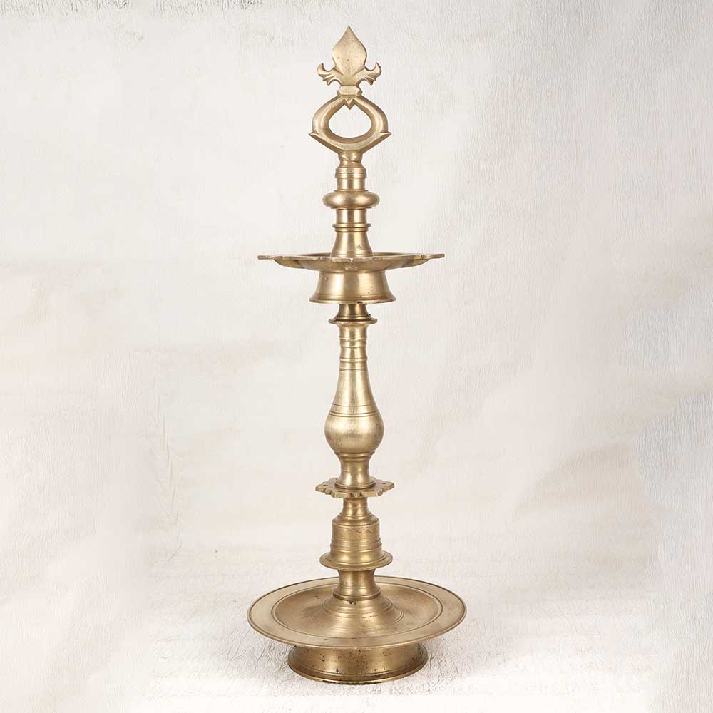 Step back in time with this vintage brass oil lamp. Intricately engraved with floral motifs, the lamp's 4 wicks cast a warm, welcoming glow when fueled with mustard oil or desi ghee. Gather with loved ones as the soft light sets a cozy ambience. Place the lamp on your dining table to complement a home cooked meal shared with family and friends. Or let it illuminate your puja room as you say your prayers. It also makes for a thoughtful housewarming or wedding gift. With its elegant, traditional styling and handcrafted quality, this brass lamp infuses any setting with nostalgia. Bring back memories of simpler times with its beautiful glow.