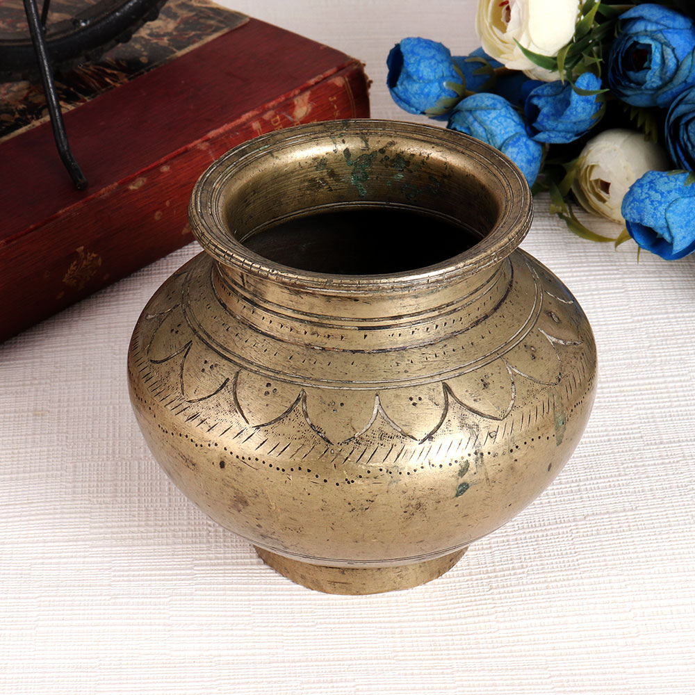 Buy a brass water pot online from our website to get hassle-free delivery to your doorstep. It is traditionally made of high quality brass by professional Indian craftsmen. You can add this collectible to your vintage collection or display it in a museum or exhibition. An incredible water pot that is often used for decoration as a flower pot. Brass pots play an important role in havan and auspicious occasions as they are used to store water, rice or milk. It is decorated with motifs and stands out from other pots in your vintage art collection. A perfect gift for your near and dear ones on any special, festive and auspicious occasion.