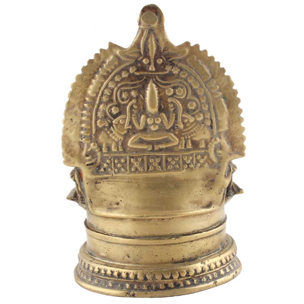 Temple bronze oil lamp with laxmi, kalash and flowers on both the side. It is made by lost wax process. Adds spiritual flavor to your decor. Vegetable oil, mustard oil or desi ghee can be used to light the lamp with cotton wicks.