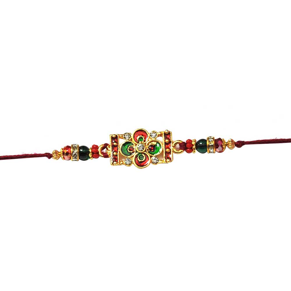 Traditional Red-Green Rakhi with Beads