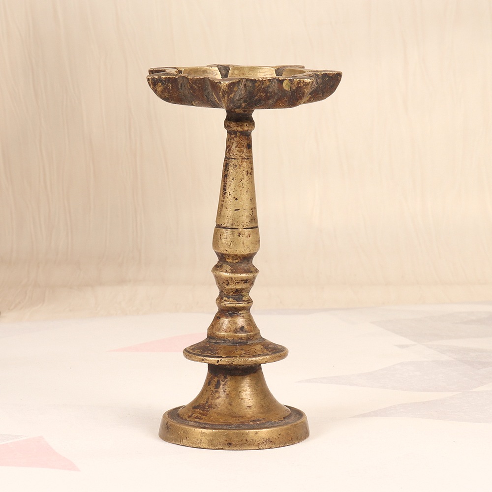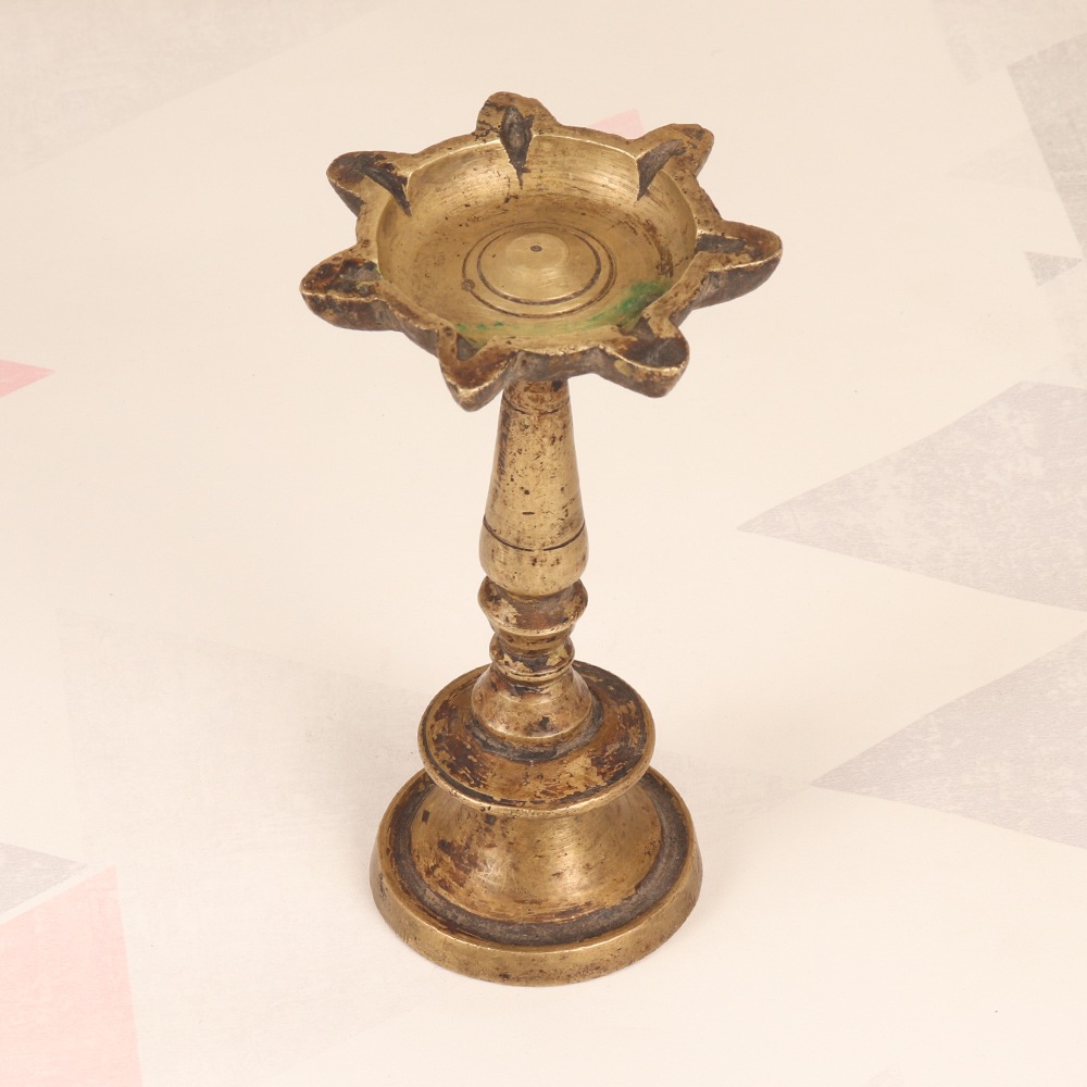 Rediscover the enchanting allure of traditional South Indian lighting with our exquisite vintage brass oil lamp. Crafted with meticulous attention to detail, this stunning 7-jyot lamp is a testament to the region's rich cultural heritage, casting a warm, flickering glow that will transport you to a world of timeless elegance. Imagine the mesmerizing dance of flames illuminating your living room, bedroom, or meditation nook. This brass oil lamp doesn't just light up a room - it ignites the senses, evoking the comforting aromas of natural oils and the tranquil essence of a bygone era. Whether you're seeking to create a sanctuary of calm or add a touch of vintage charm to your decor, this captivating lamp is a must-have. Elevate your space and reconnect with the timeless traditions of South India. Invest in the enduring beauty of our vintage brass oil lamp, and let its enchanting glow inspire you to slow down, savor the moment, and bask in the warmth of a simpler time.