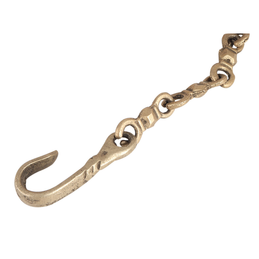A traditional vintage style hanging oil lamp for home decoration. It has smooth surface. With its golden colour it looks shiny. A chain with a hook for hanging completed it as a hanging oil lamp. Mustard oil or ghee can be used to light the lamp with cotton wicks. It will be an eye-catcher when hung in your home temple. Display it in your vintage collection to enhance your collection. Gift it to your loved ones on special occasions to please them.