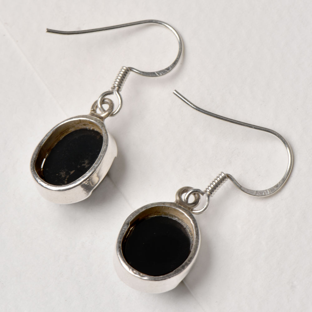 Handcrafted Trendy 92.5 Sterling Silver Earrings Big Oval Cabochon Bezel Setting Dangler Earrings with Big Oval Black Onyx Stone In Bezel Setting. Wear it for weddings, engagement , interviews , birthday party, Valentine Day etc.