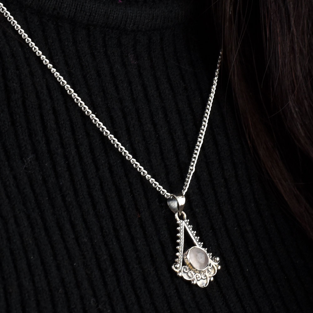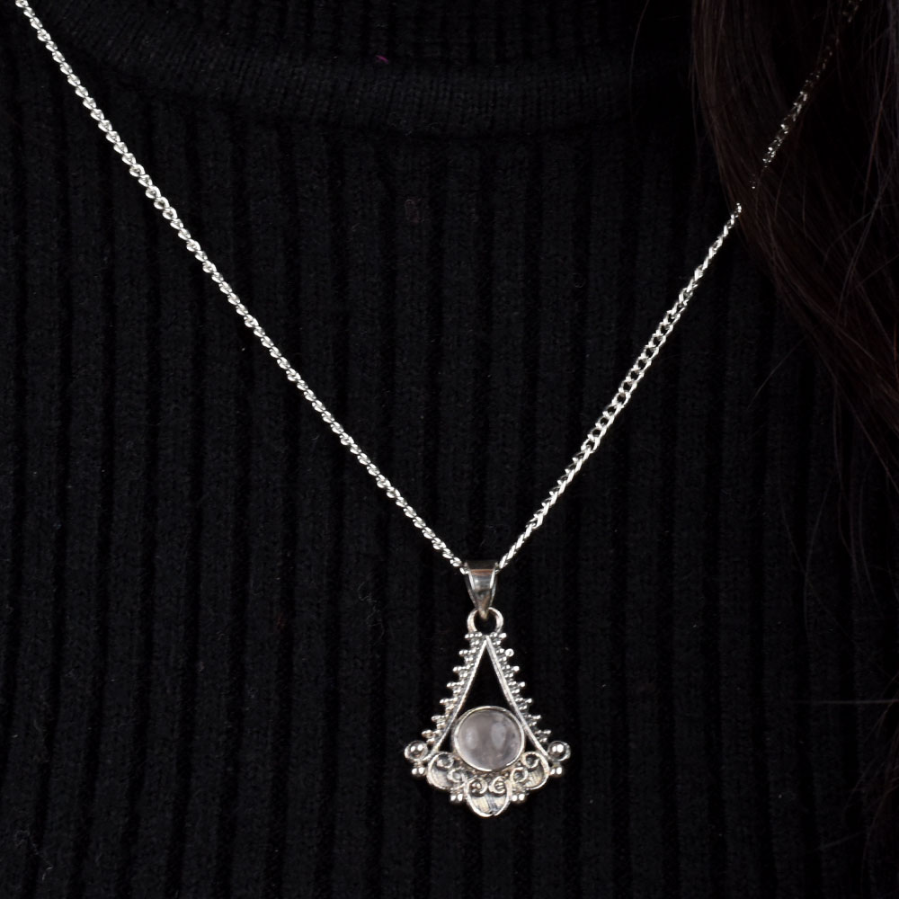 Triangular Semi Precious Spiral Design 92.5 Sterling Silver Pendant Necklace is a very subtle accessory for a wedding , anniversary birthday party etc. It is also the perfect gift for your family and friends on the occasion Diwali, Christmas or new year party. It can also be worn to a small family gathering.